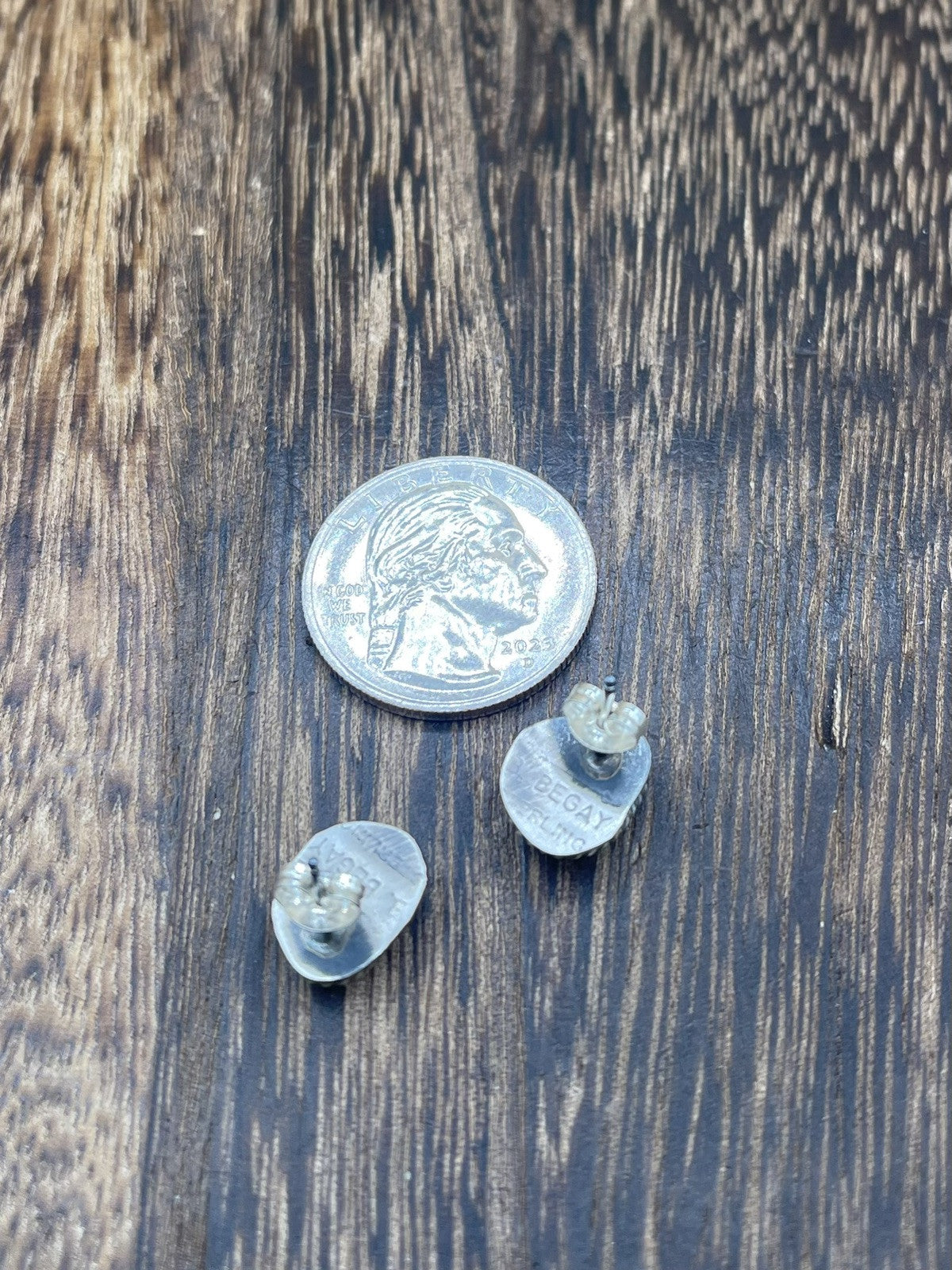 Add a touch of Native American heritage to your jewelry collection with these beautiful small post stud earrings. Handmade by Navajo artisan Byron Begay, these sterling silver earrings feature a stunning Kingman Turquoise stone in a bezel setting.