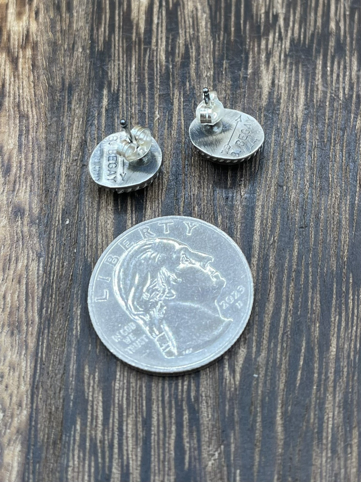 Add a touch of Native American heritage to your jewelry collection with these beautiful small post stud earrings. Handmade by Navajo artisan Byron Begay, these sterling silver earrings feature a stunning Kingman Turquoise stone in a bezel setting.