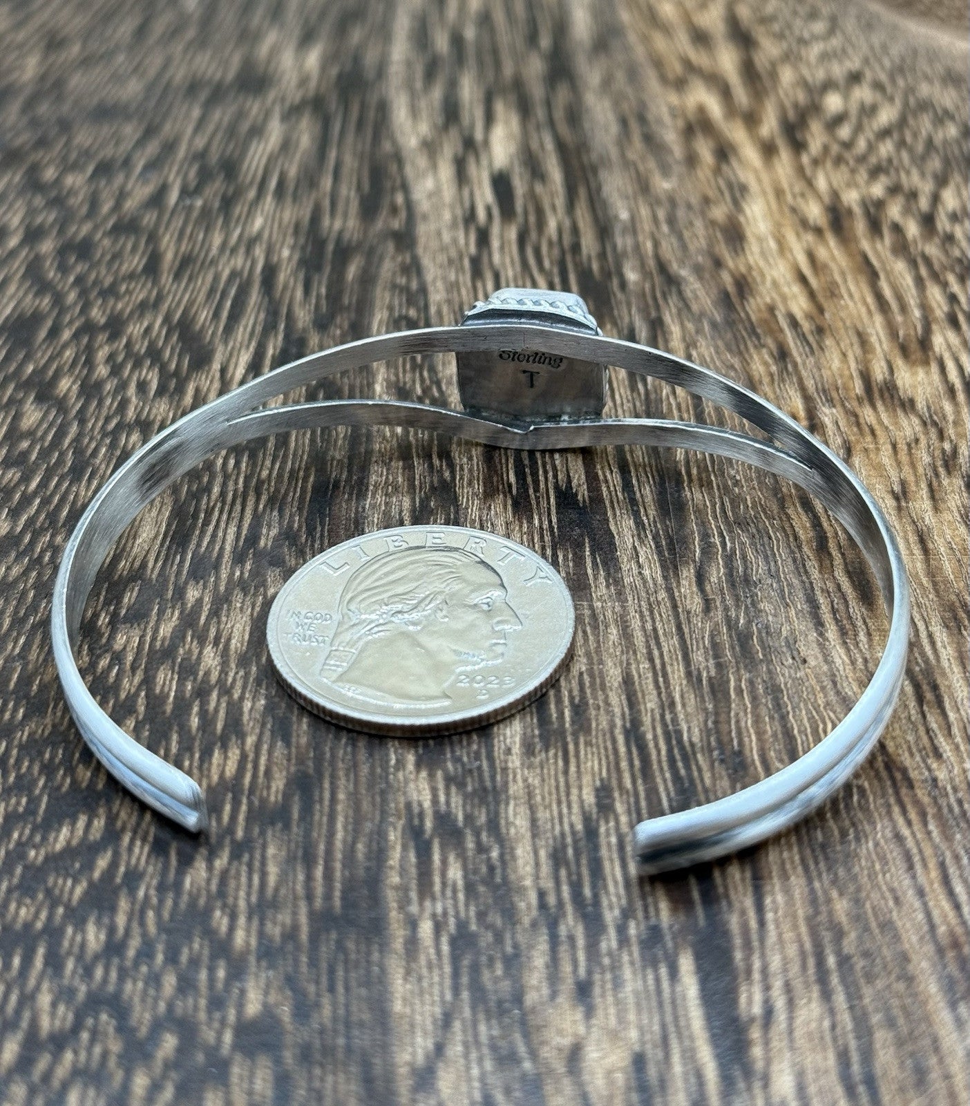This Native American Navajo handmade cuff bracelet a features beautiful natural kingman turquoise stone. The intricate design and attention to detail make this bracelet a true beauty. The Navajo tribal affiliation adds to the authenticity and uniqueness of this piece.