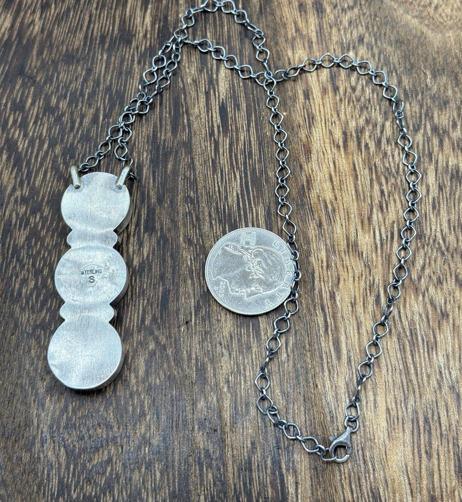 Navajo Handmade Sterling Silver Liberty Dime Cluster Bar Lariat Necklace 18”