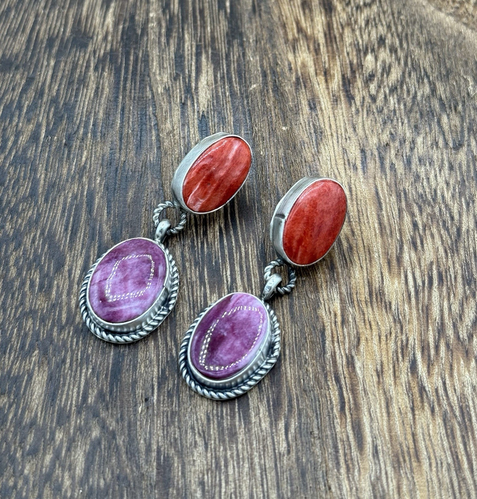 Navajo Handmade Sterling Silver Mixed Spiny Oyster Shell Post Dangle Earrings