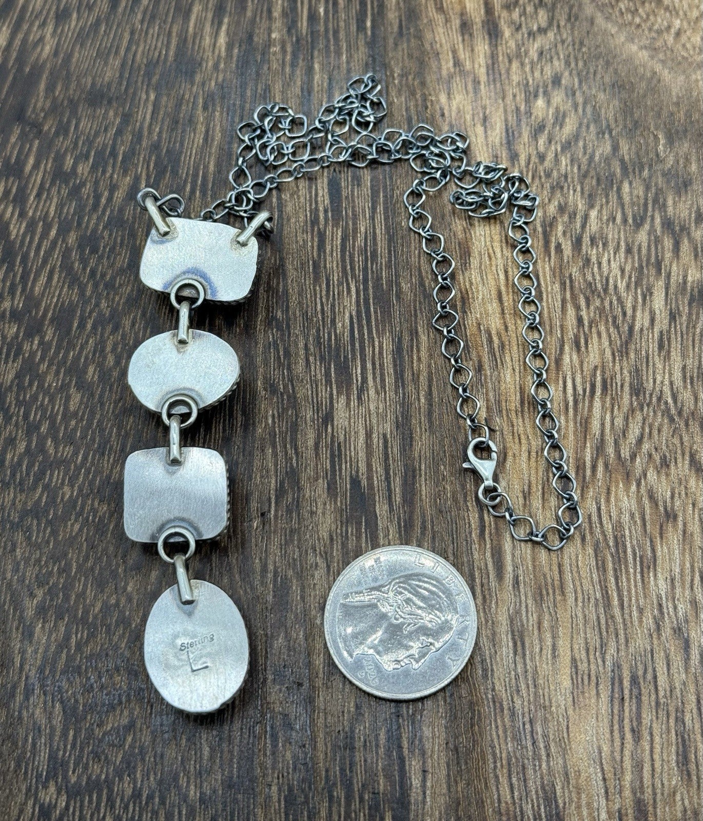 Navajo Handmade Sterling Silver Multi Color Mixed Stone Lariat Necklace 18”