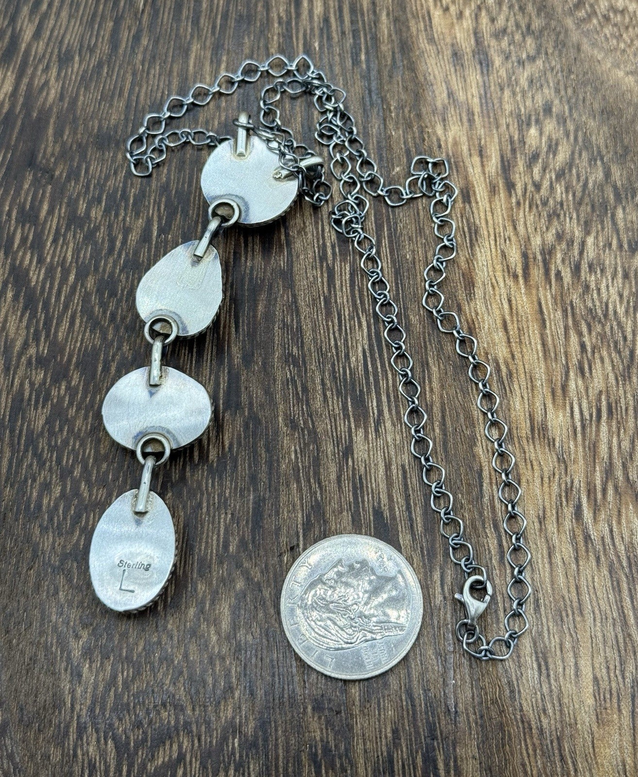 Navajo Handmade Sterling Silver Multi Color Mixed Stone Lariat Necklace 18”