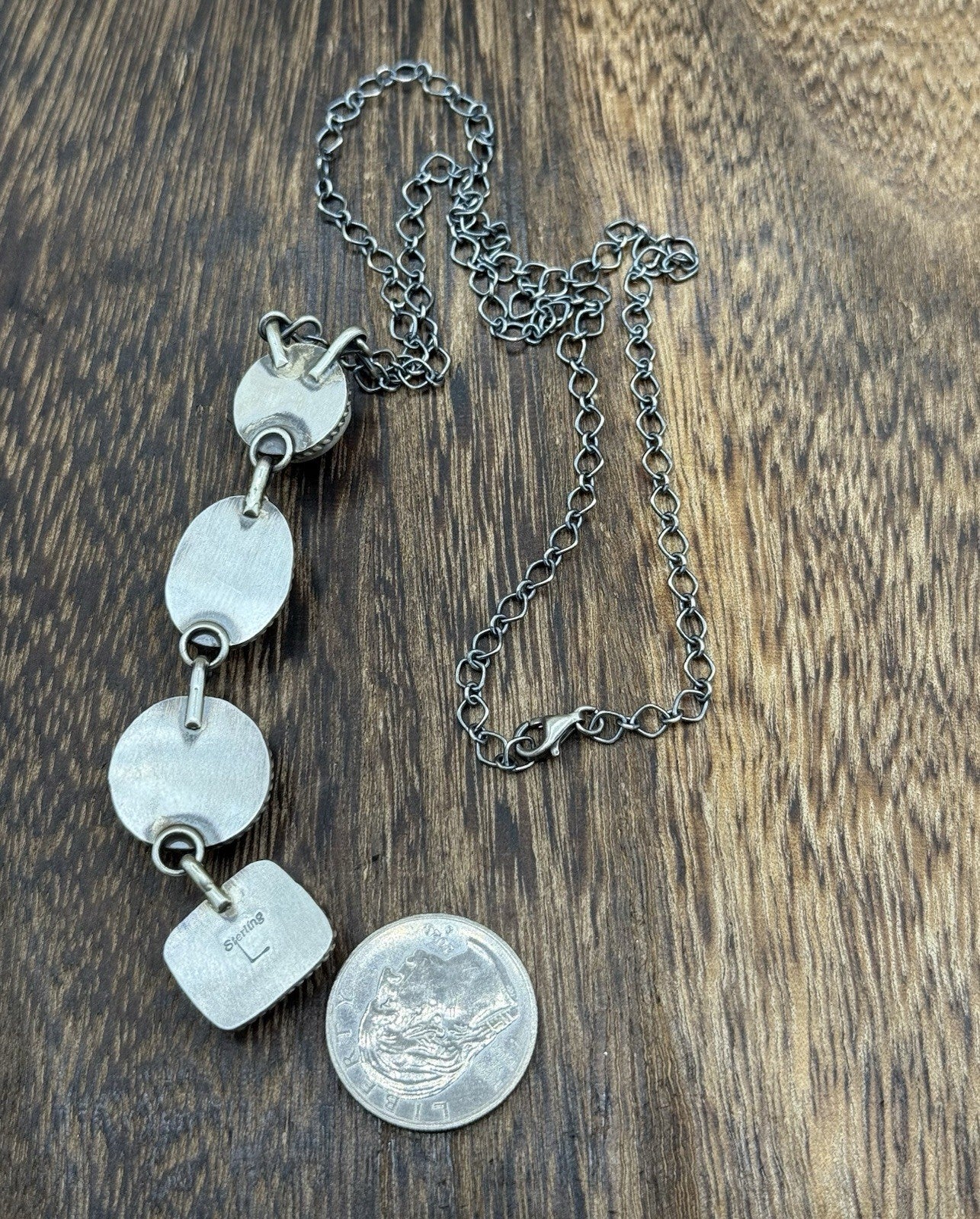 Navajo Handmade Sterling Silver Multi Color Mixed Stone Lariat Necklace 18”