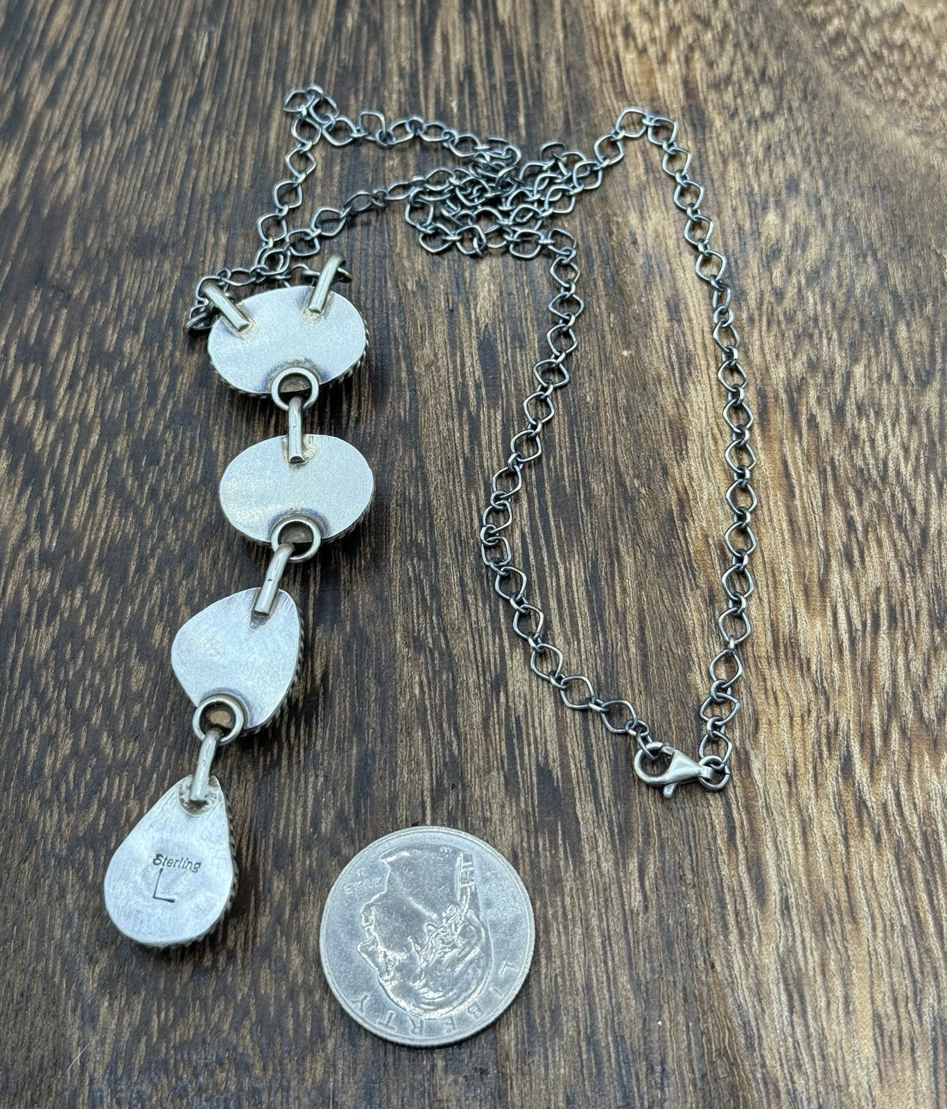 Navajo Handmade Sterling Silver Multi Color Mixed Stone Lariat Necklace 18”