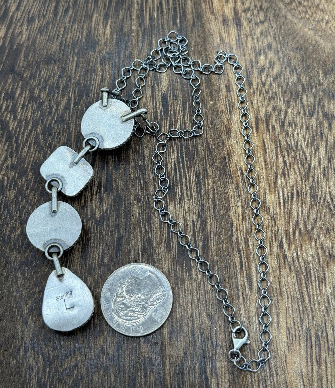 Navajo Handmade Sterling Silver Multi Color Mixed Stone Lariat Necklace 18”