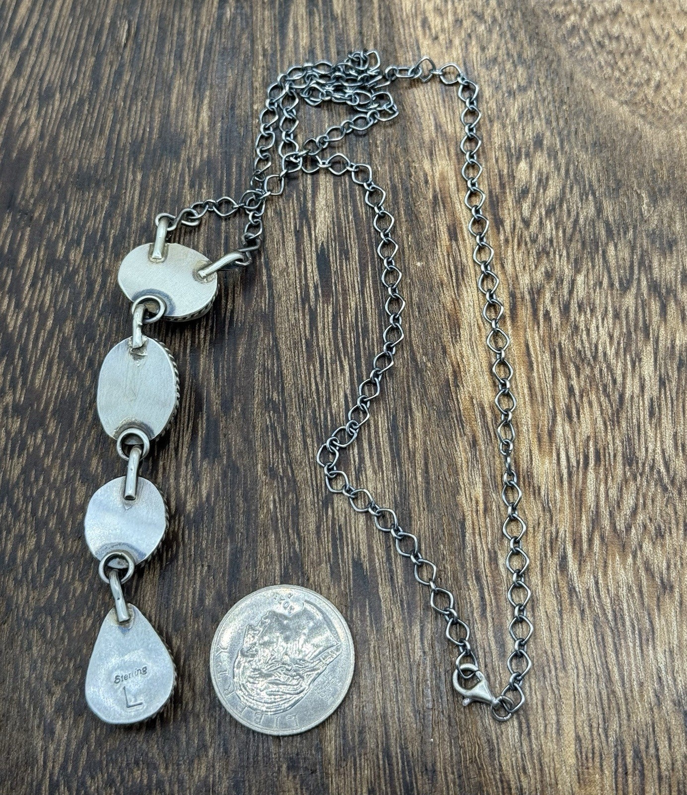 Navajo Handmade Sterling Silver Multi Color Mixed Stone Lariat Necklace 18”