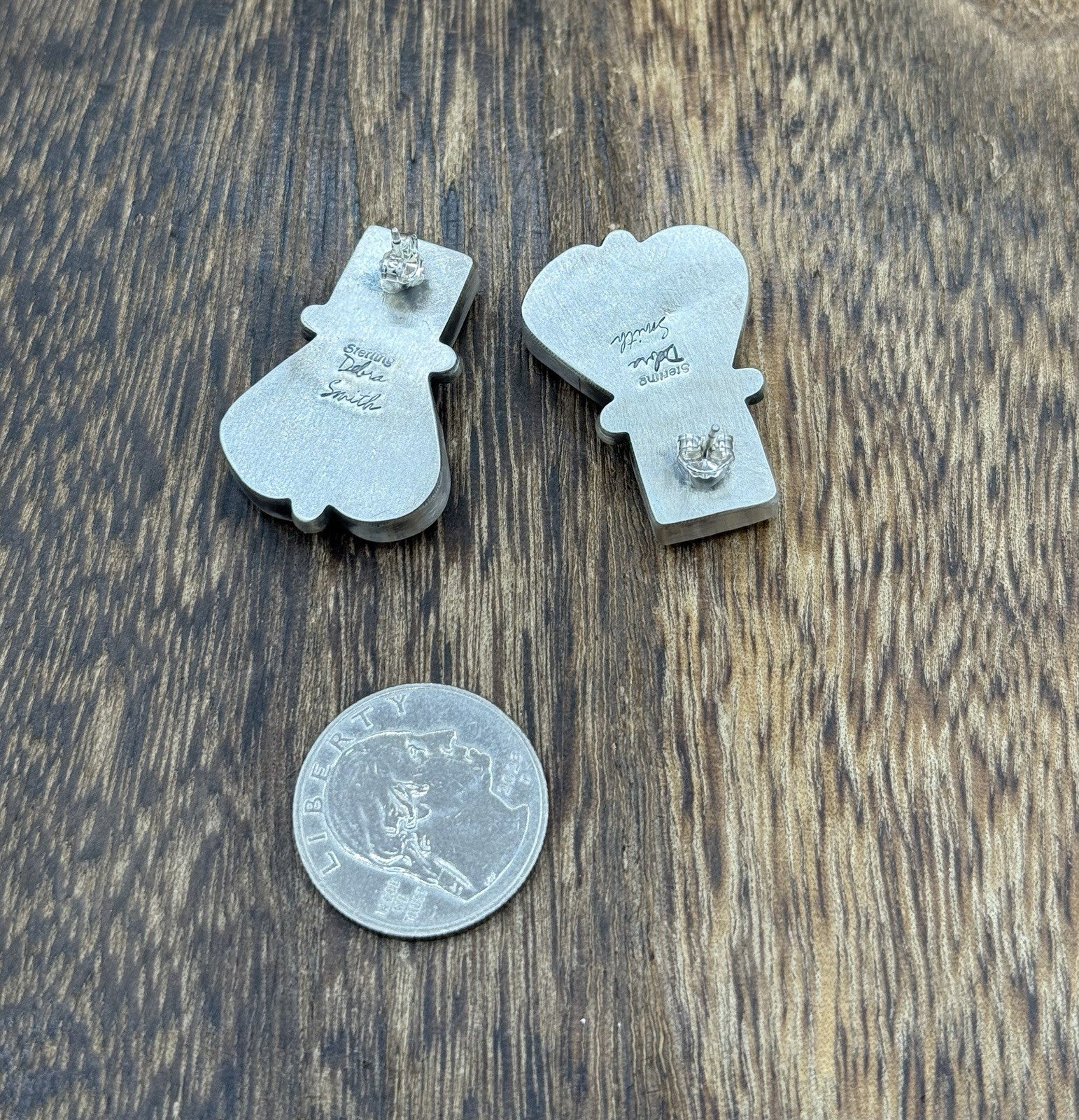 Add a touch of Native American heritage to your jewelry collection with these beautiful post dangle earrings. Handmade by Navajo artisan Debra Smith, these sterling silver earrings feature stunning multi color spiny oyster Shell stones in a bezel setting. The old look of the earrings adds to their charm and appeal.
