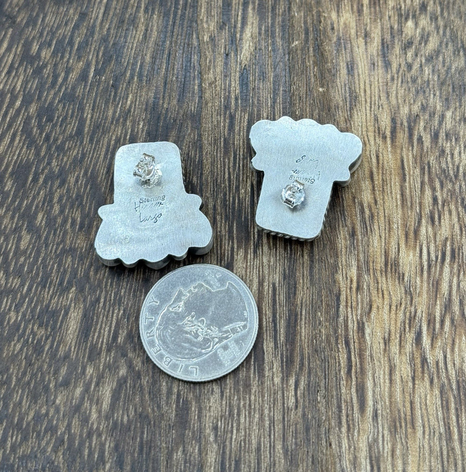 Add a touch of Native American heritage to your jewelry collection with these beautiful post dangle earrings. Handmade by Navajo artisan Hiram Largo, these sterling silver earrings feature stunning spiny oyster and pink conch shell stones in a bezel setting. The old look of the earrings adds to their charm and appeal.