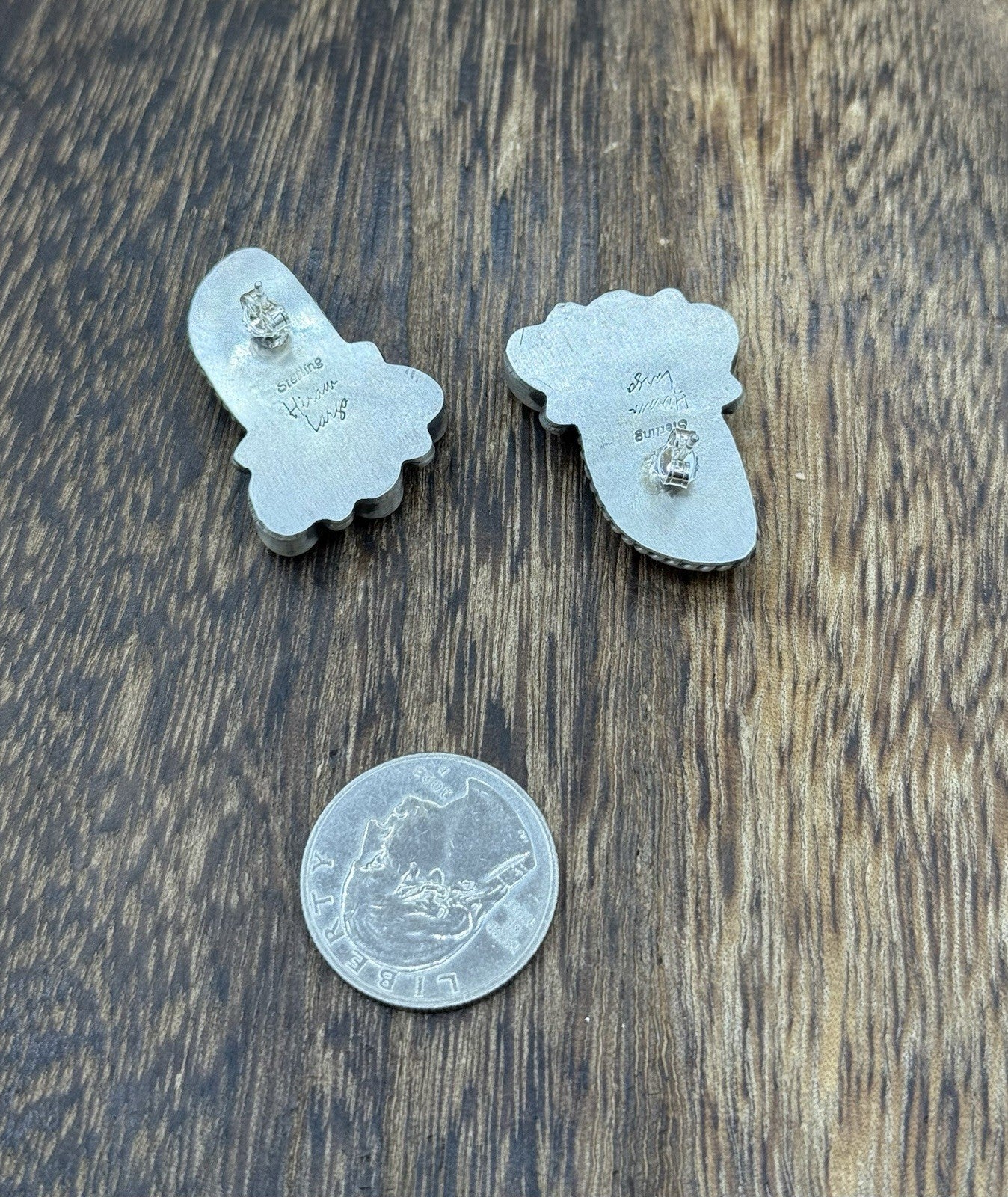 Add a touch of Native American heritage to your jewelry collection with these beautiful post dangle earrings. Handmade by Navajo artisan Hiram Largo, these sterling silver earrings feature stunning spiny oyster and pink conch shell stones in a bezel setting. The old look of the earrings adds to their charm and appeal.