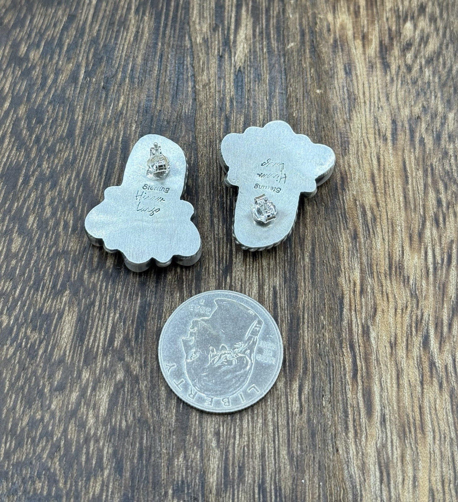 Add a touch of Native American heritage to your jewelry collection with these beautiful post dangle earrings. Handmade by Navajo artisan Hiram Largo, these sterling silver earrings feature stunning spiny oyster and pink conch shell stones in a bezel setting. The old look of the earrings adds to their charm and appeal.