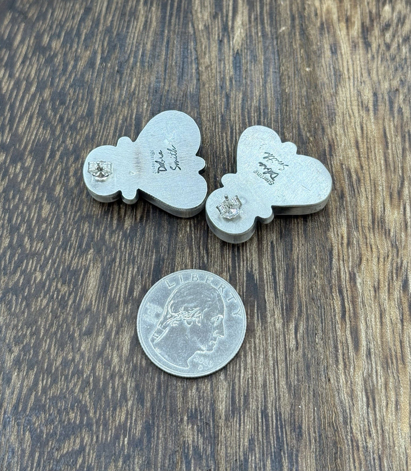 Add a touch of Native American heritage to your jewelry collection with these beautiful post dangle earrings. Handmade by Navajo artisan Debra Smith, these sterling silver earrings feature stunning multi color spiny oyster shell, turquoise and pink conch shell stones in a bezel setting. The old look of the earrings adds to their charm and appeal.