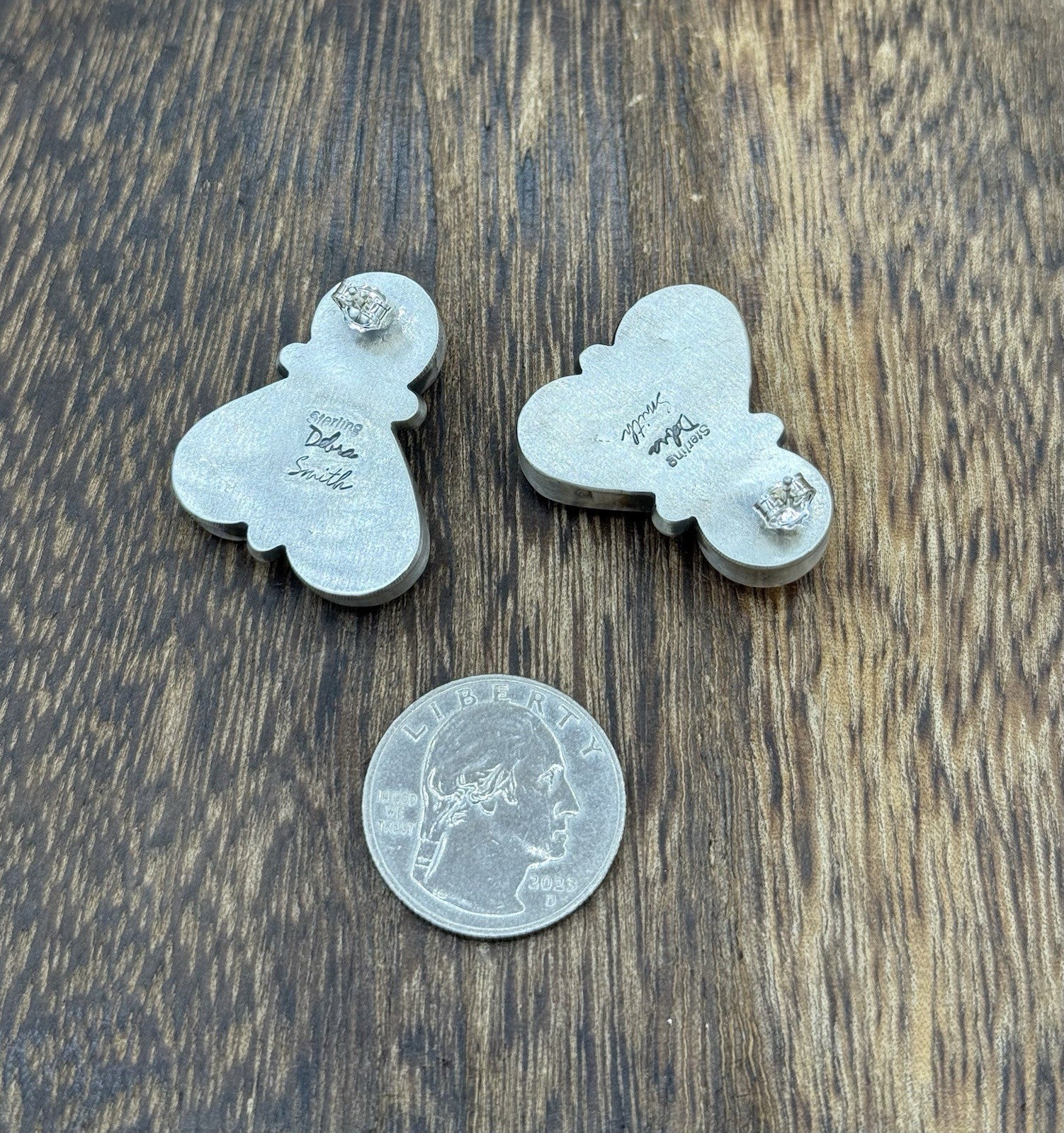 Add a touch of Native American heritage to your jewelry collection with these beautiful post dangle earrings. Handmade by Navajo artisan Debra Smith, these sterling silver earrings feature stunning multi color spiny oyster shell, turquoise and pink conch shell stones in a bezel setting. The old look of the earrings adds to their charm and appeal.