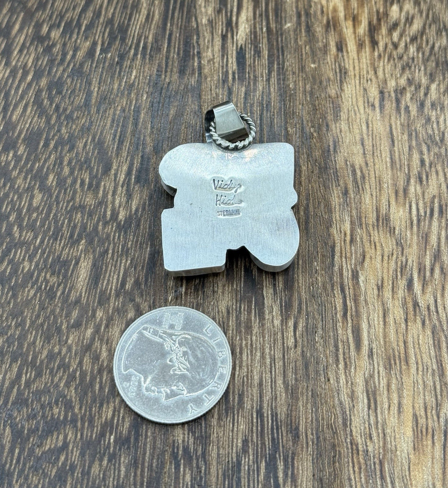 Elevate your jewelry collection with this exquisite Navajo handmade pendant. Crafted by Vicky Hicks, this stunning piece features a cluster of multi turquoise and spiny oyster shell stones, set in a sterling silver setting.