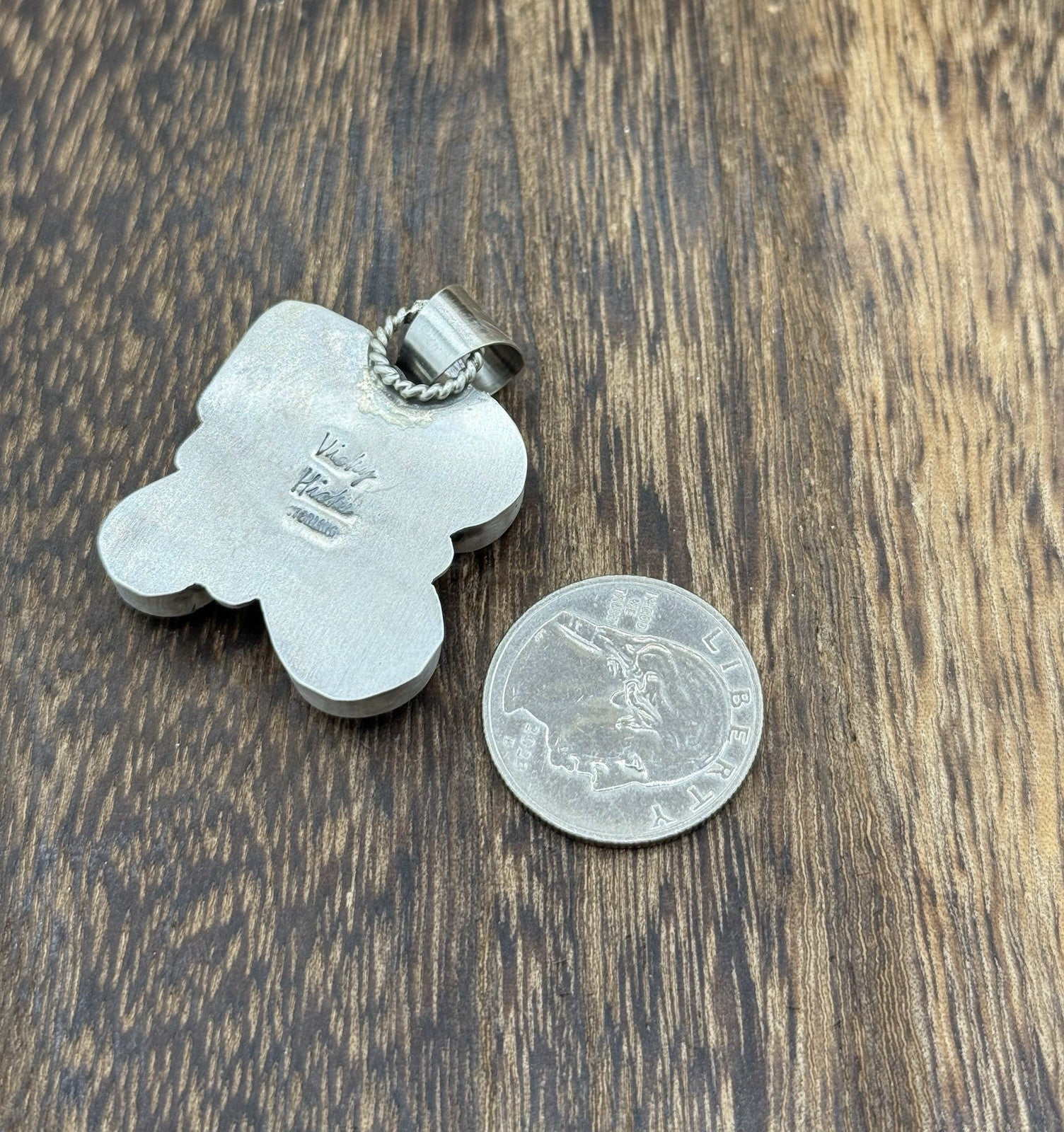 Elevate your jewelry collection with this exquisite Navajo handmade pendant. Crafted by Vicky Hicks, this stunning piece features a cluster of multi turquoise and spiny oyster shell stones, set in a sterling silver setting.