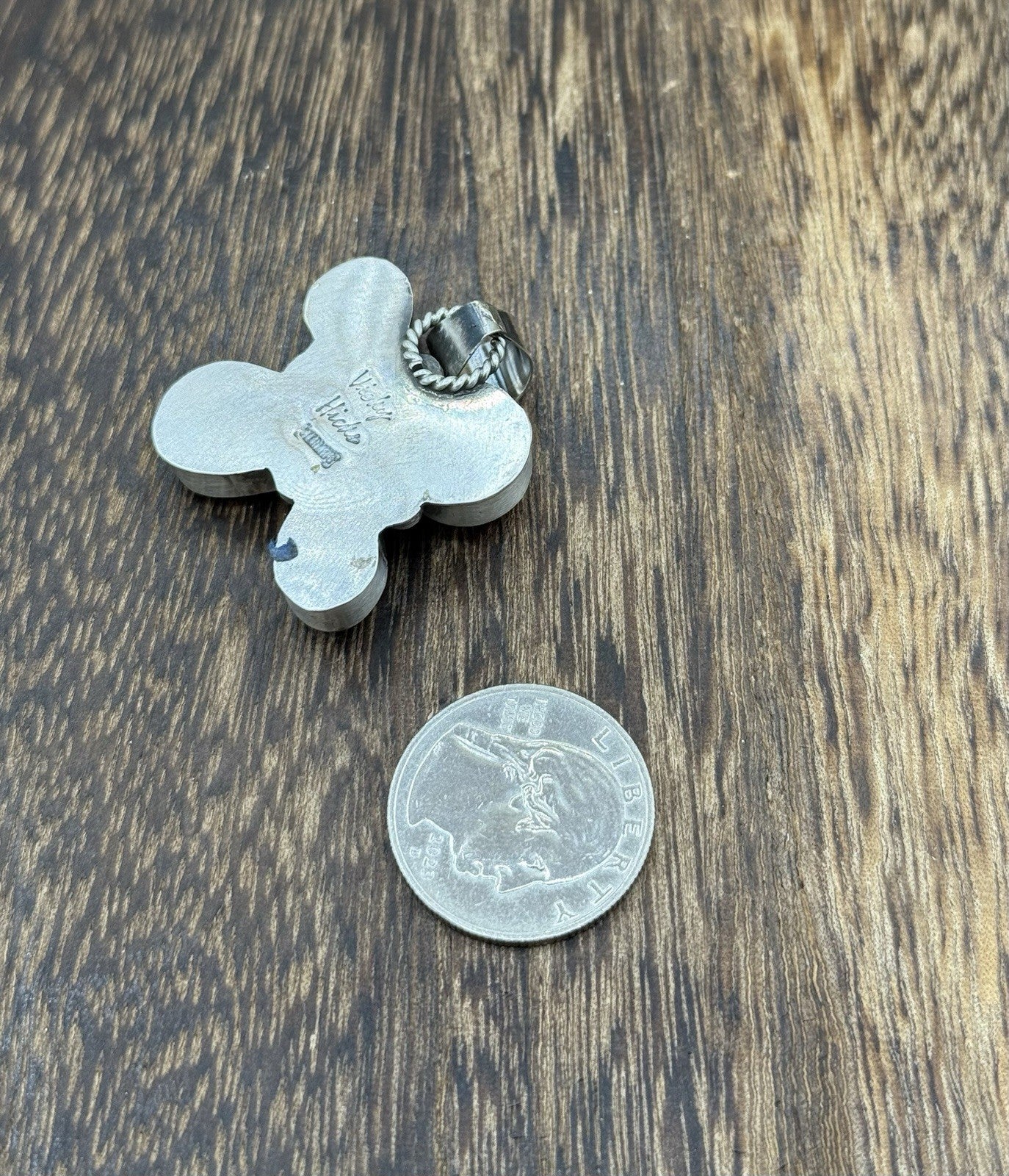 Elevate your jewelry collection with this exquisite Navajo handmade pendant. Crafted by Vicky Hicks, this stunning piece features a cluster of multi turquoise and spiny oyster shell stones, set in a sterling silver setting.