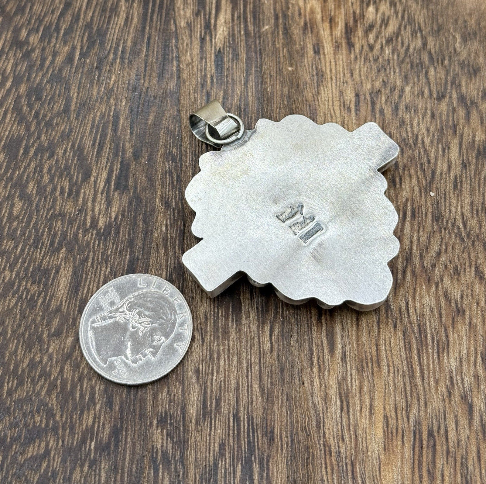 Navajo Handmade Sterling Silver Multi Color Turquoise Spiny Cluster Pendant Lg.