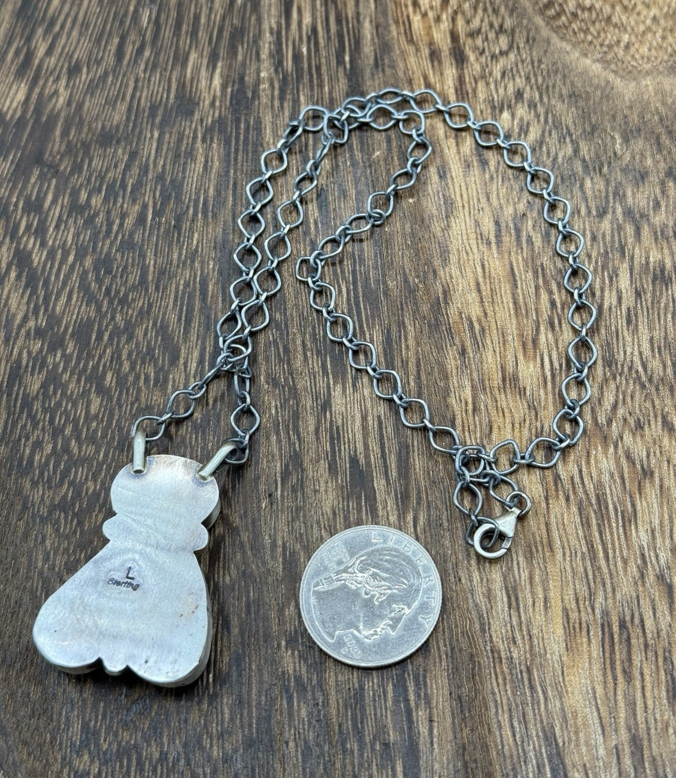 This exquisite necklace is a true work of art handcrafted by Native American artisan LeTricia Largo, The stunning cluster bar shaped necklace features beautiful Turquoise and spiny oyster stones set in sterling silver bezel. The pendant hangs on an 18-inch chain with lobster closure, making it a perfect accessory for any occasion.