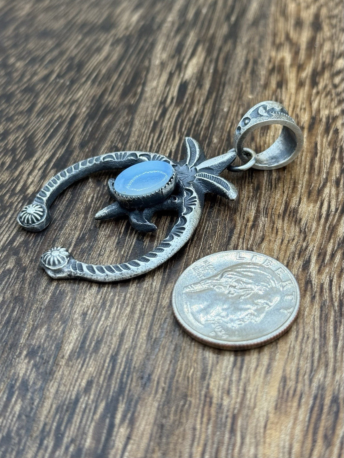 Navajo Handmade Sterling Silver Old Look Golden Hills Turquoise Naja Pendant