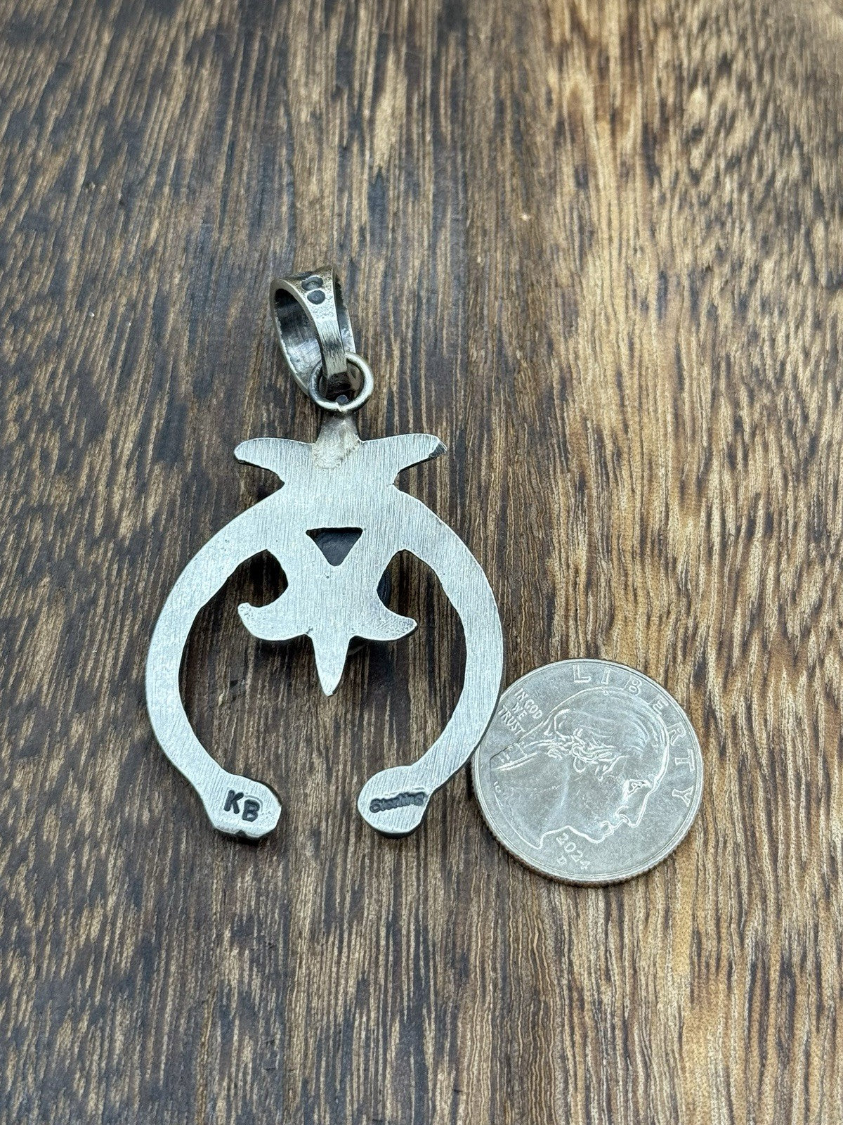 This beautiful pendant is a true work of art. Handmade by Kevin Billah, a Native American artisan, it features a unique dangle shape and a bezel setting style. The pendant is made of 925 sterling silver and adorned with a stunning golden hills turquoise stone.