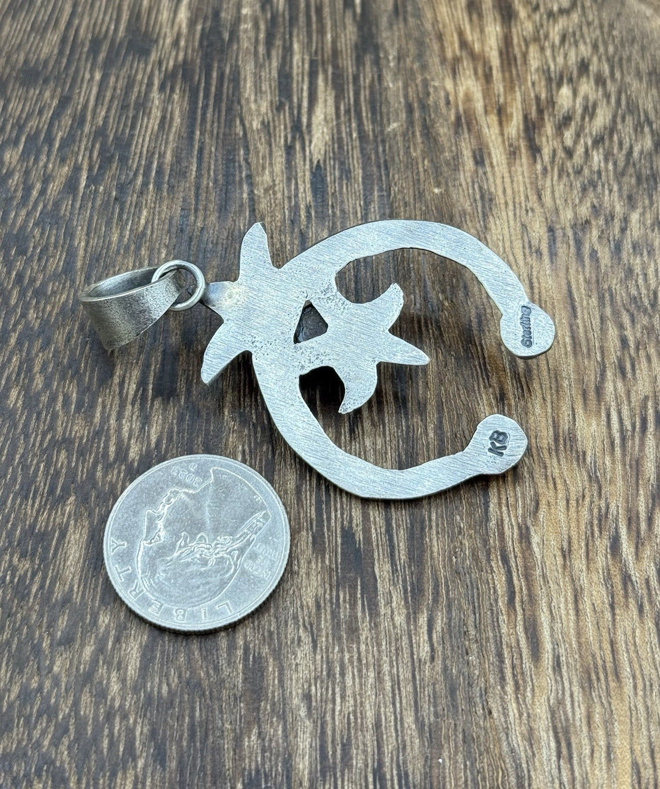 Navajo Handmade Sterling Silver Old Look Golden Hills Turquoise Naja Pendant