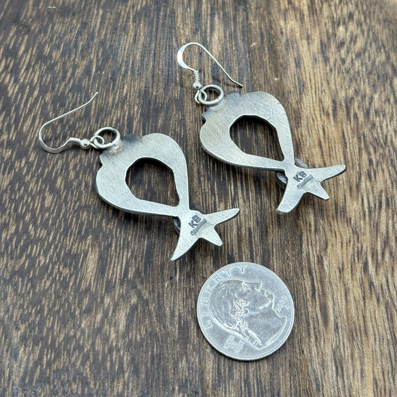 Navajo Handmade Sterling Silver Old Look Kingman Turquoise Earrings Kevin Billah