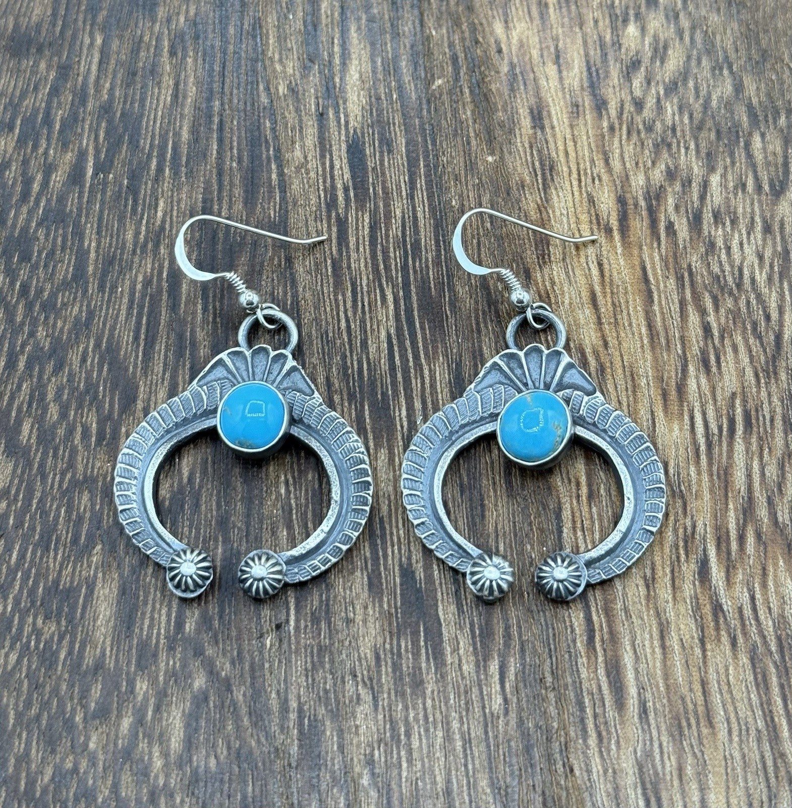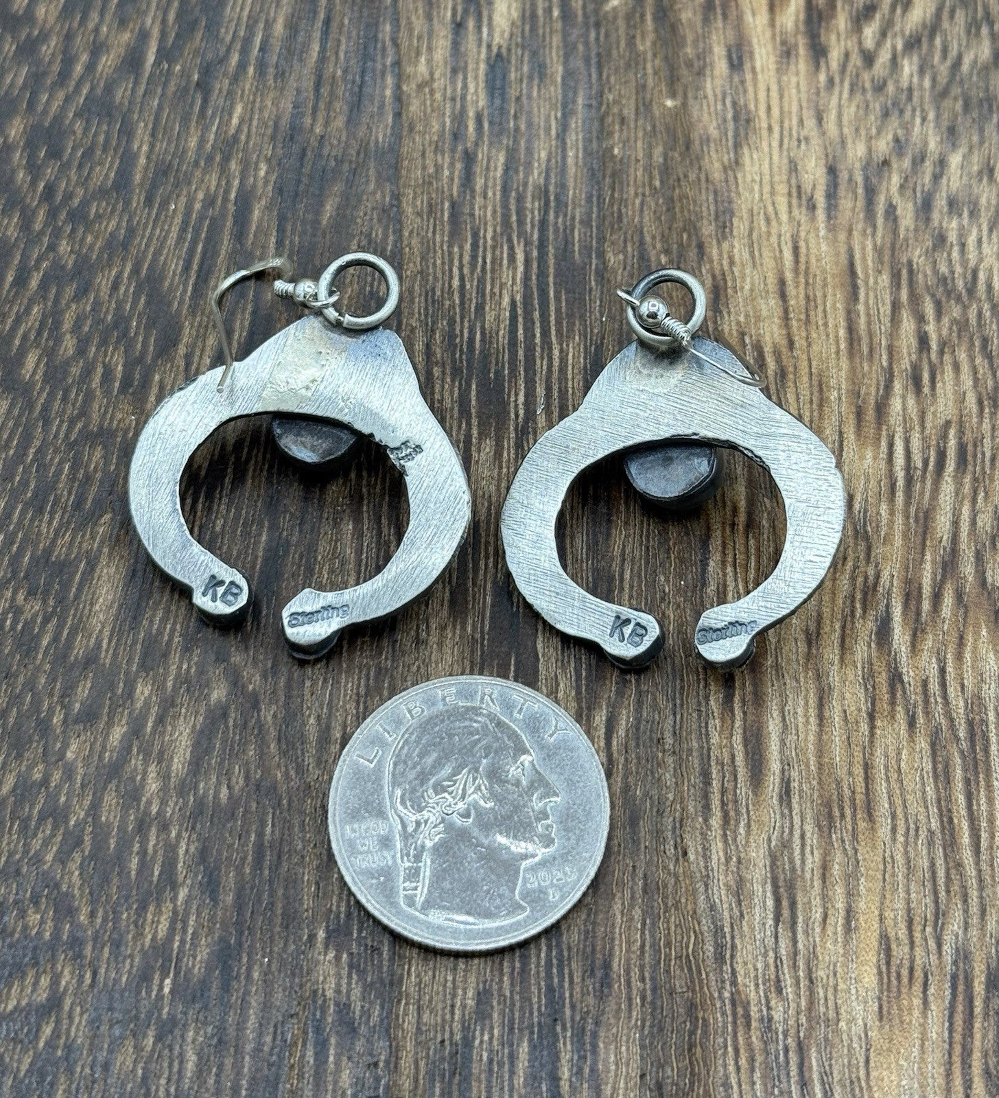Navajo Handmade Sterling Silver Old Look Kingman Turquoise Earrings Kevin Billah