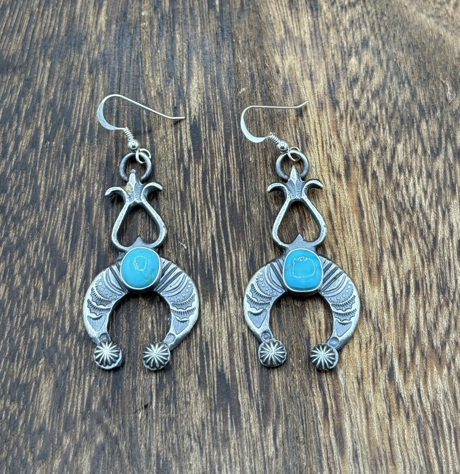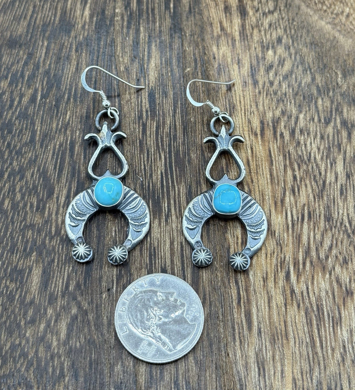 Navajo Handmade Sterling Silver Old Look Kingman Turquoise Earrings Kevin Billah