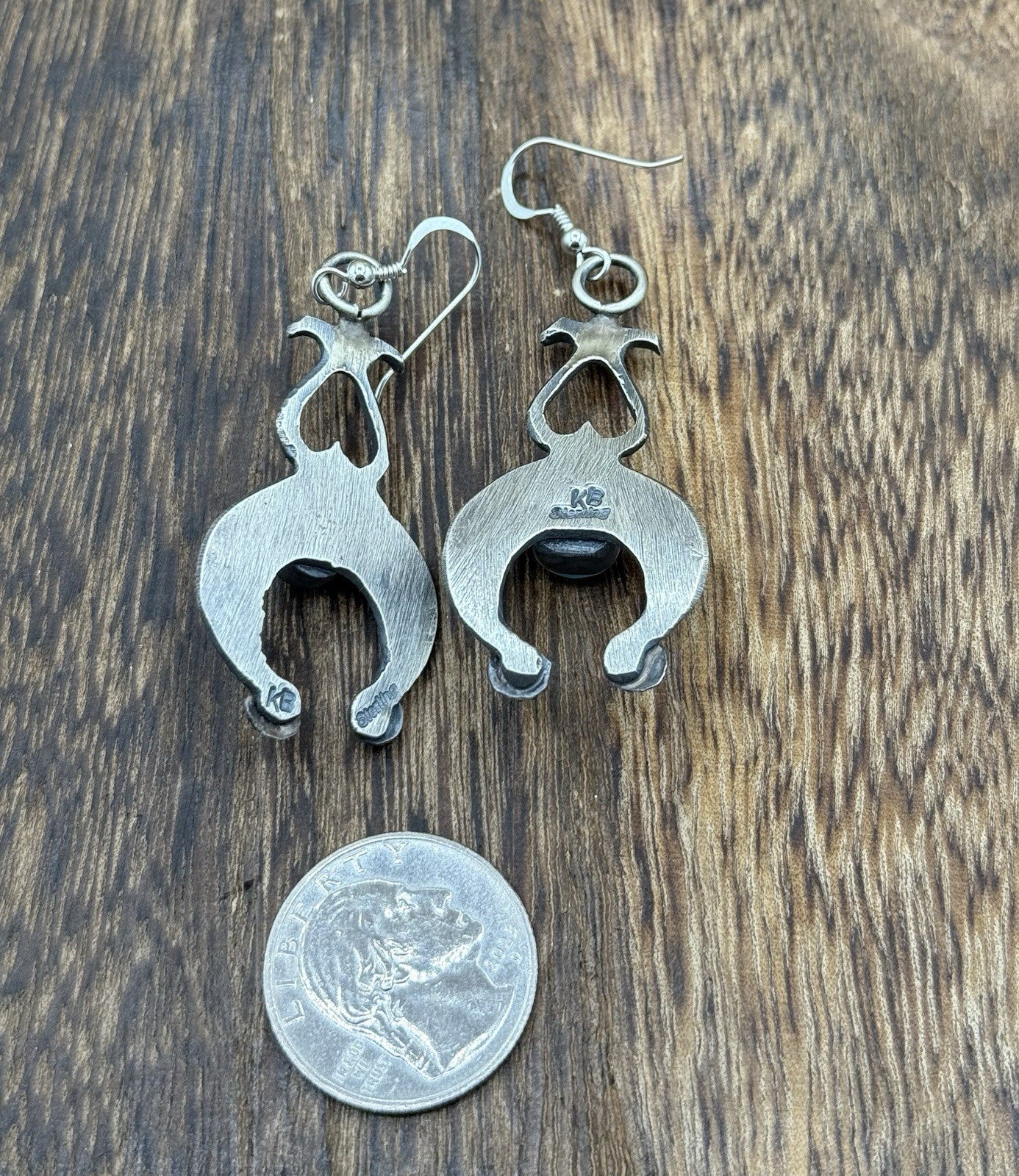 Add a touch of Native American heritage to your jewelry collection with these beautiful dangle earrings. Cast/Handmade by Navajo artisan Kevin Billah, these sterling silver earrings feature stunning Kingman Turquoise stones in a bezel setting. The old look of the earrings adds to their charm and appeal.