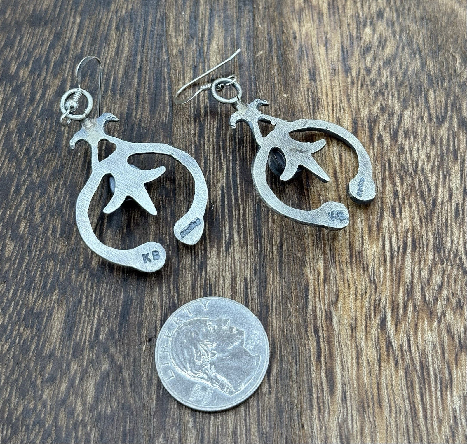 Add a touch of Native American heritage to your jewelry collection with these beautiful dangle earrings. Cast/Handmade by Navajo artisan Kevin Billah, these sterling silver earrings feature stunning Kingman Turquoise stones in a bezel setting. The old look of the earrings adds to their charm and appeal.