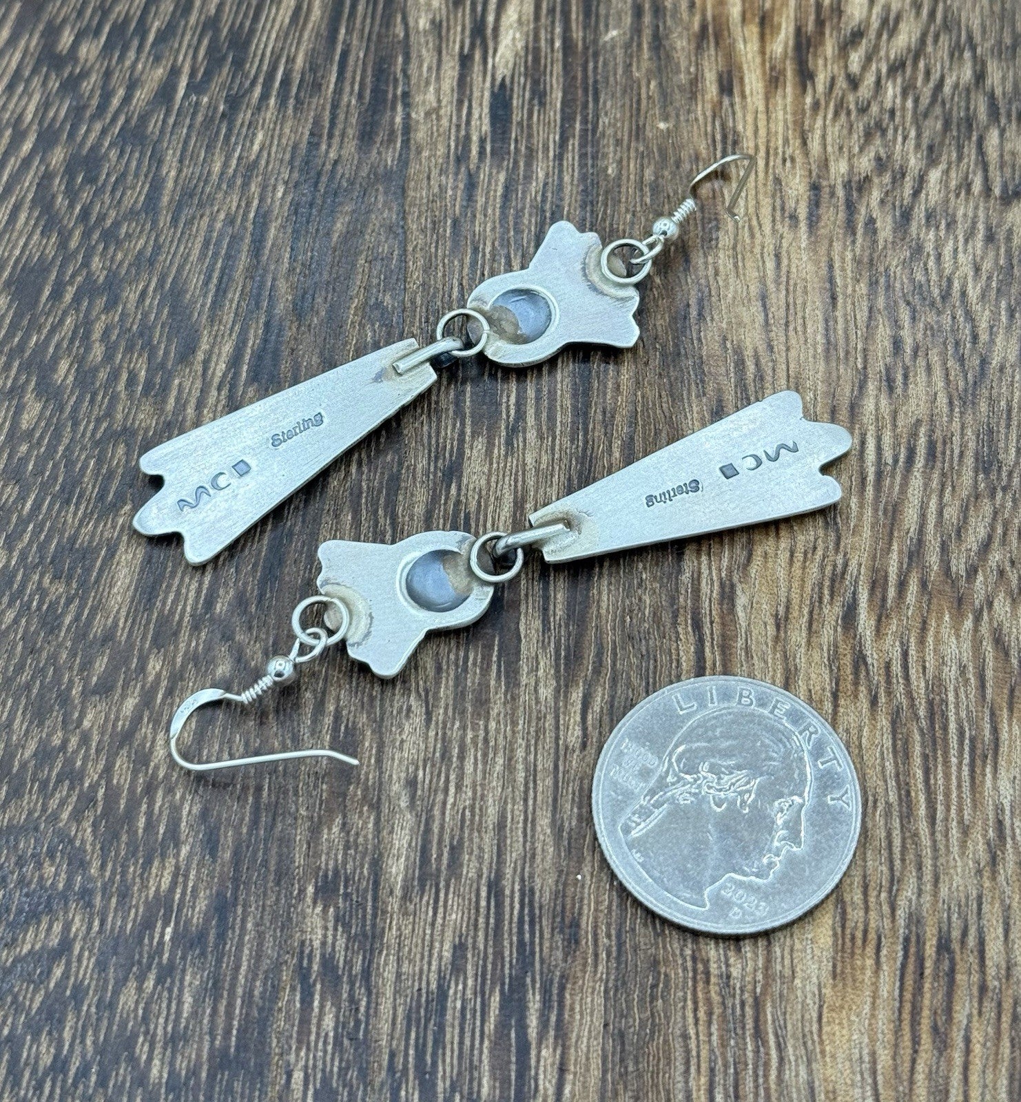 Add a touch of Native American heritage to your jewelry collection with these beautiful dangle earrings. Handmade by Navajo artisan Martha Cayatineto, these sterling silver earrings feature a stamped cast concho design.