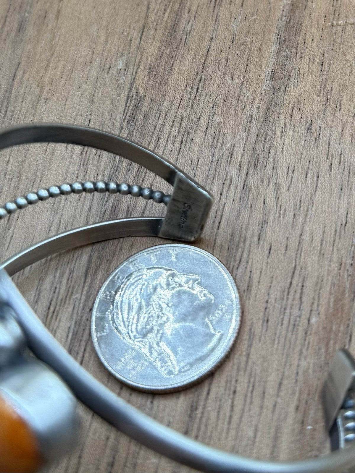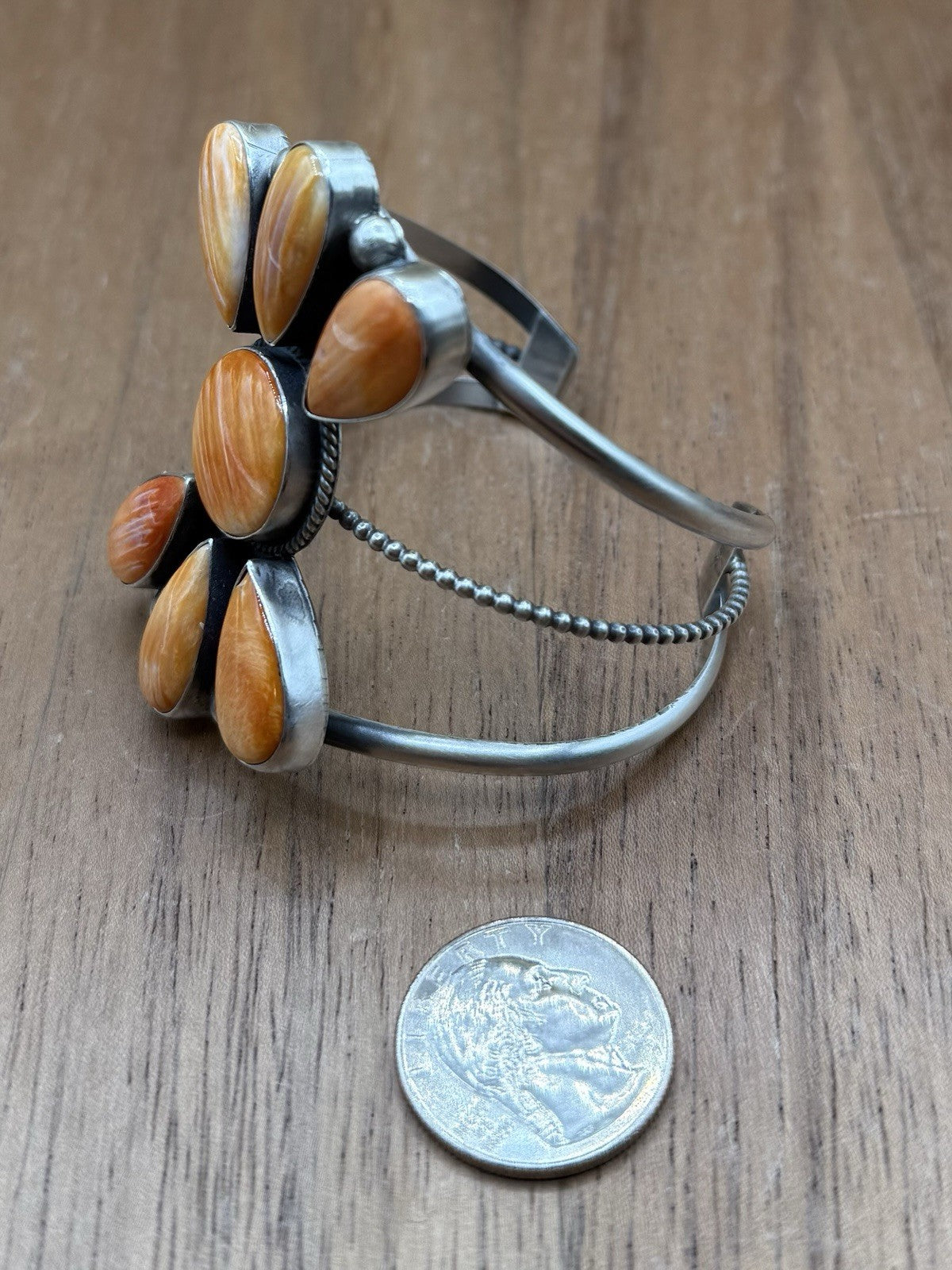 Navajo Handmade Sterling Silver Orange Spiny Oyster Cluster Cuff Bracelet