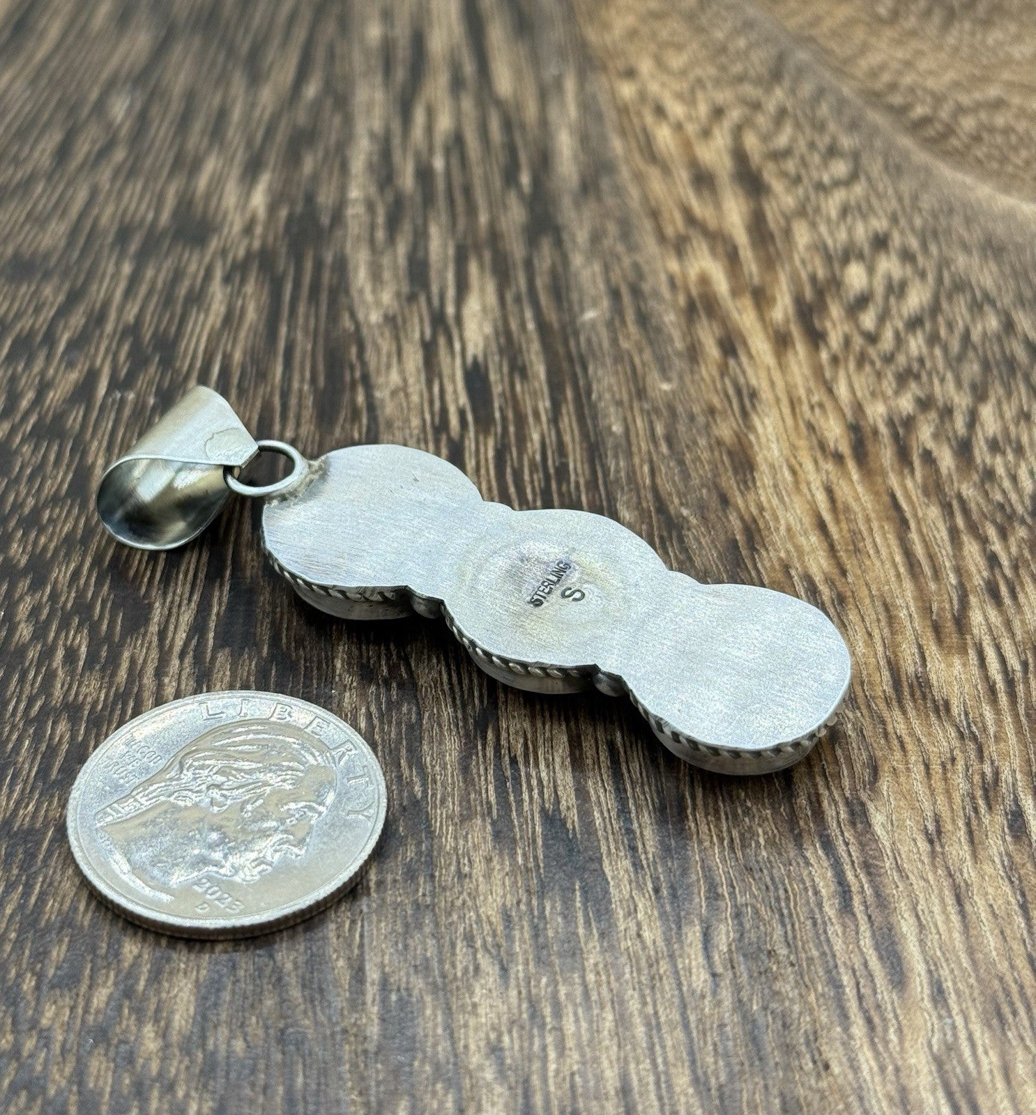 Elevate your jewelry collection with this exquisite Navajo handmade pendant. Crafted by Debra Smith, this stunning piece features a cluster of turquoise stones , set in a sterling silver bar setting.