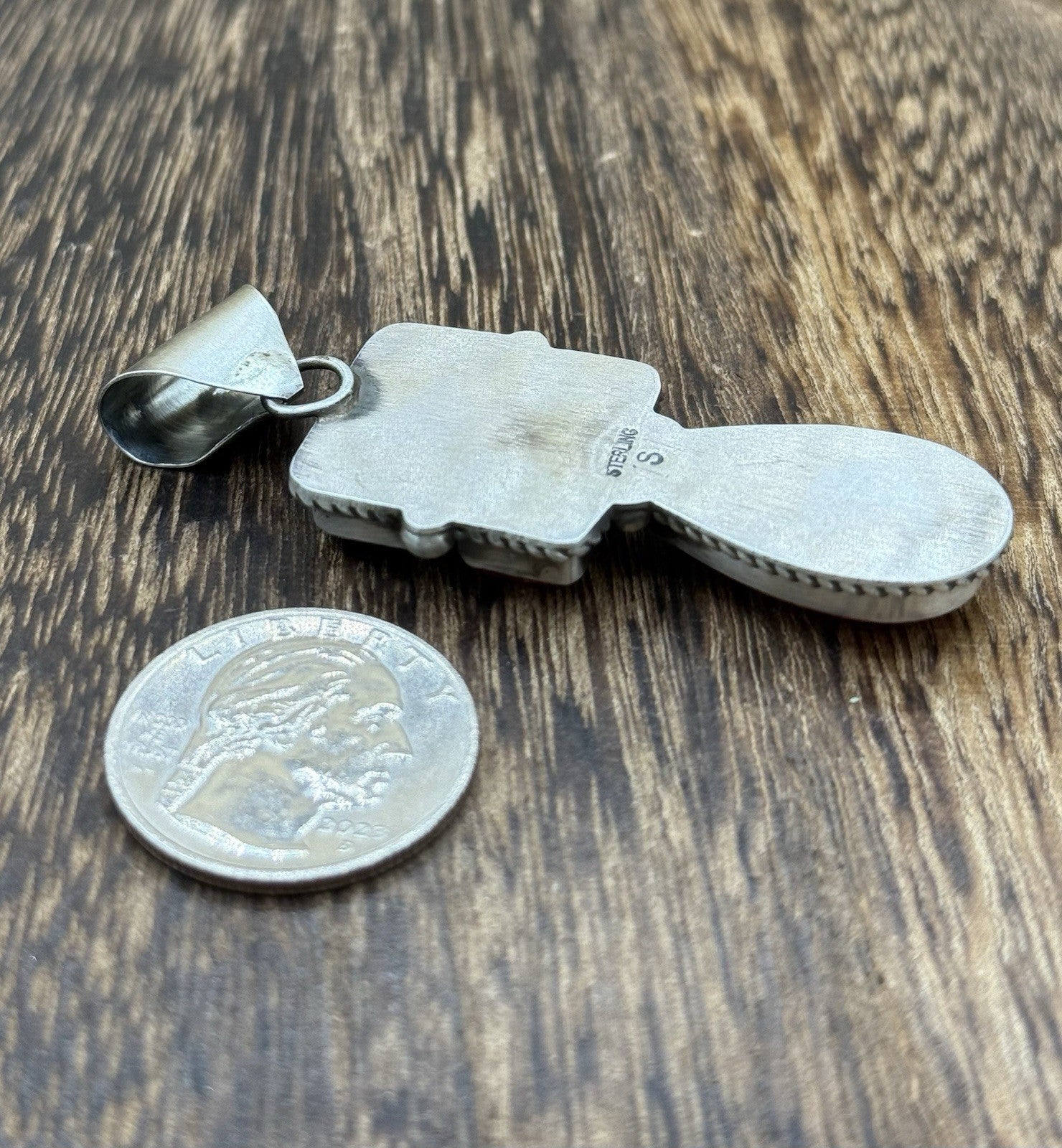 Elevate your jewelry collection with this exquisite Navajo handmade pendant. Crafted by Debra Smith, this stunning piece features a cluster of turquoise stones , set in a sterling silver bar setting.