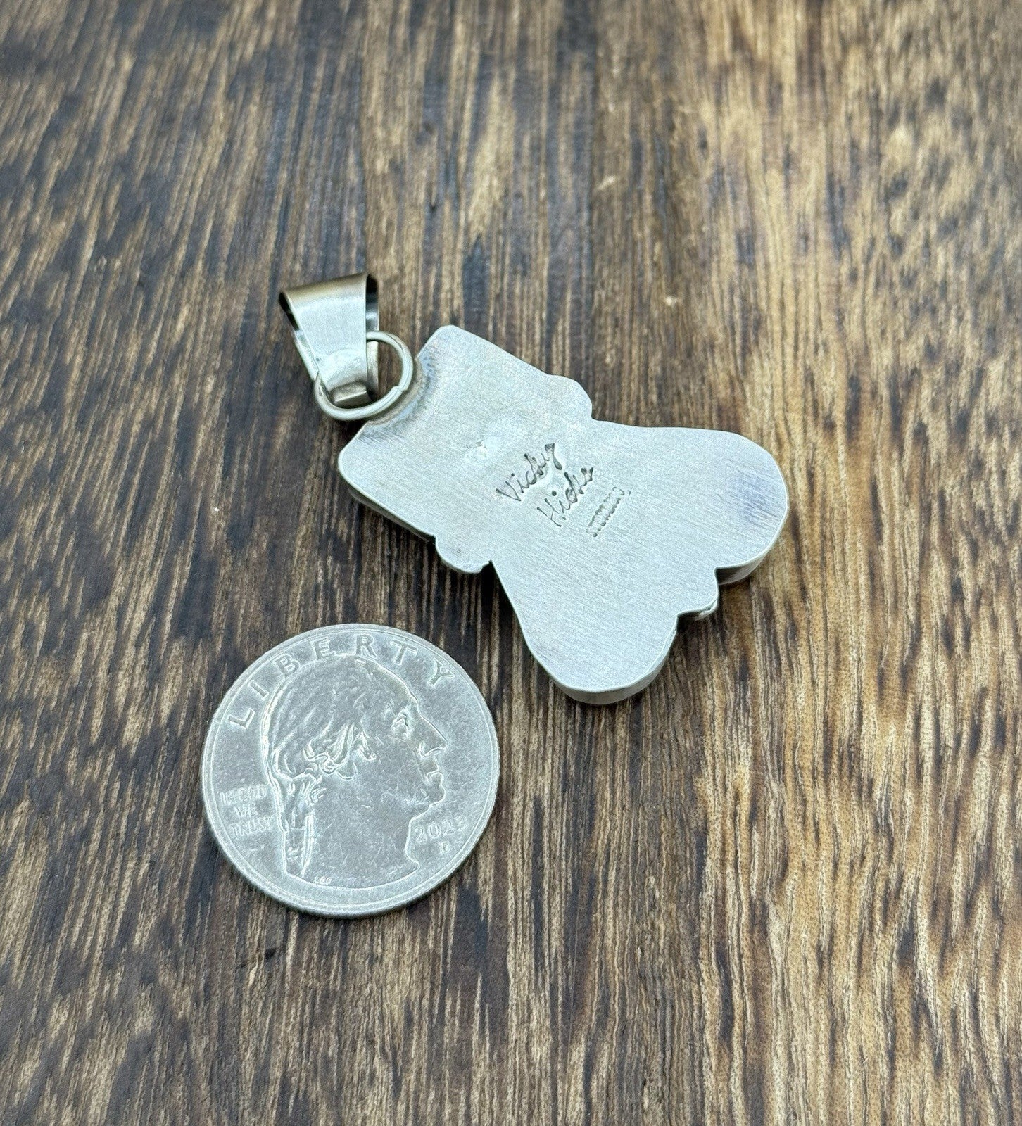Elevate your jewelry collection with this exquisite Navajo handmade pendant. Crafted by Vicky Hicks, this stunning piece features spiny oyster shell stones, set in a sterling silver setting.