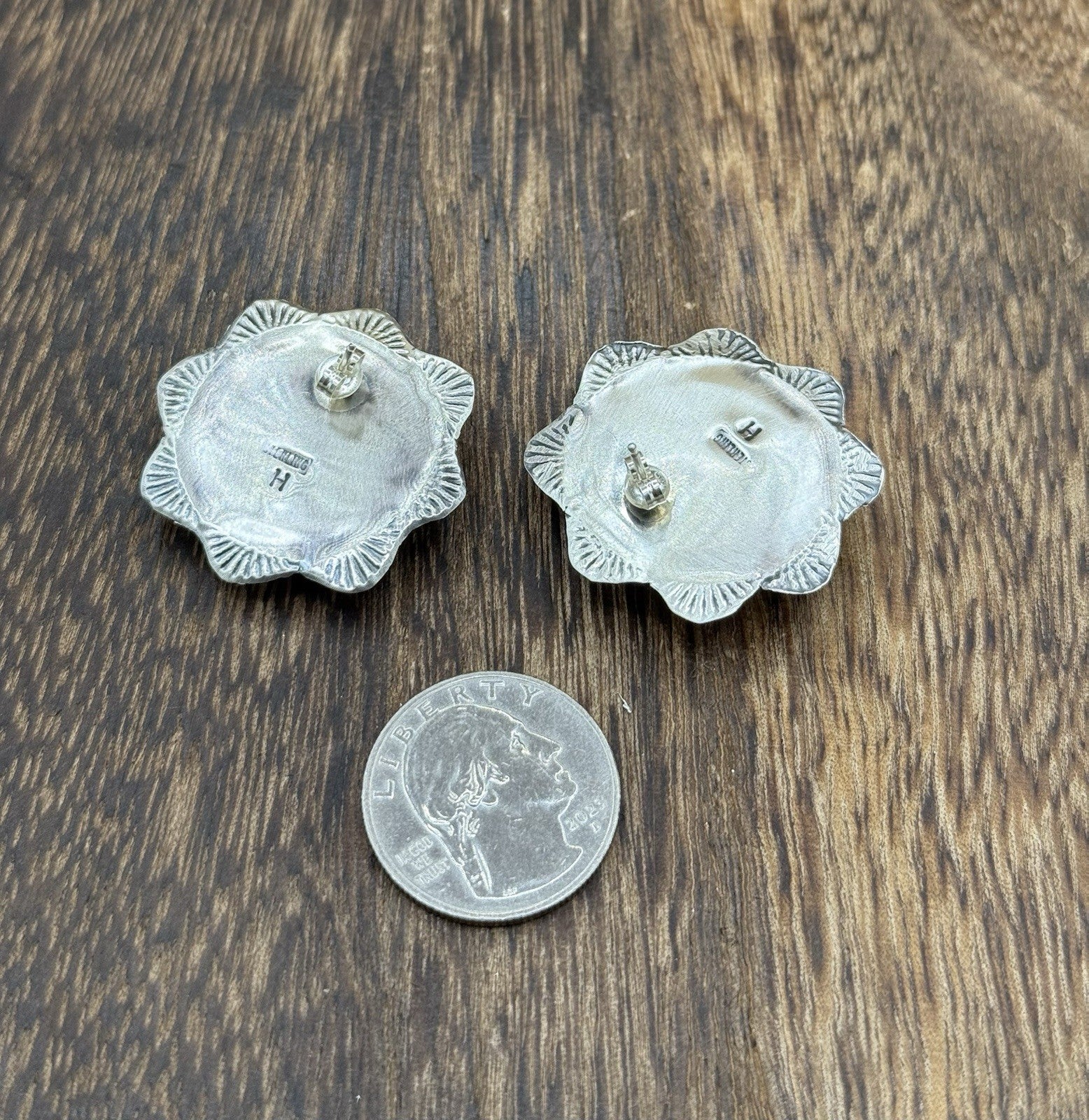Navajo Handmade Sterling Silver Purple Spiny Oyster Shell Stamped Post Earrings