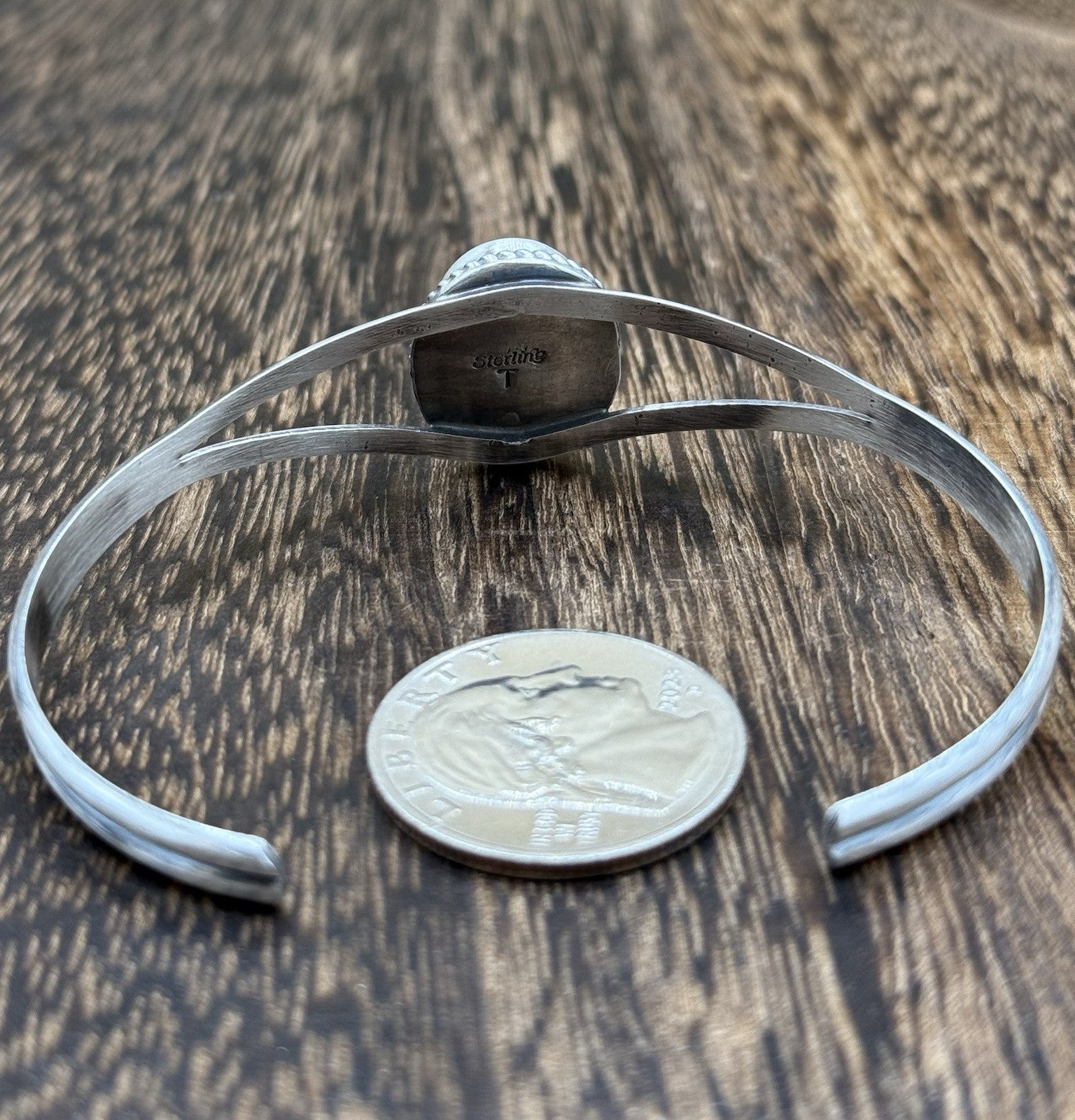 This Native American Navajo handmade cuff bracelet a features beautiful natural spiny oyster shell stone. The intricate design and attention to detail make this bracelet a true beauty. The Navajo tribal affiliation adds to the authenticity and uniqueness of this piece.