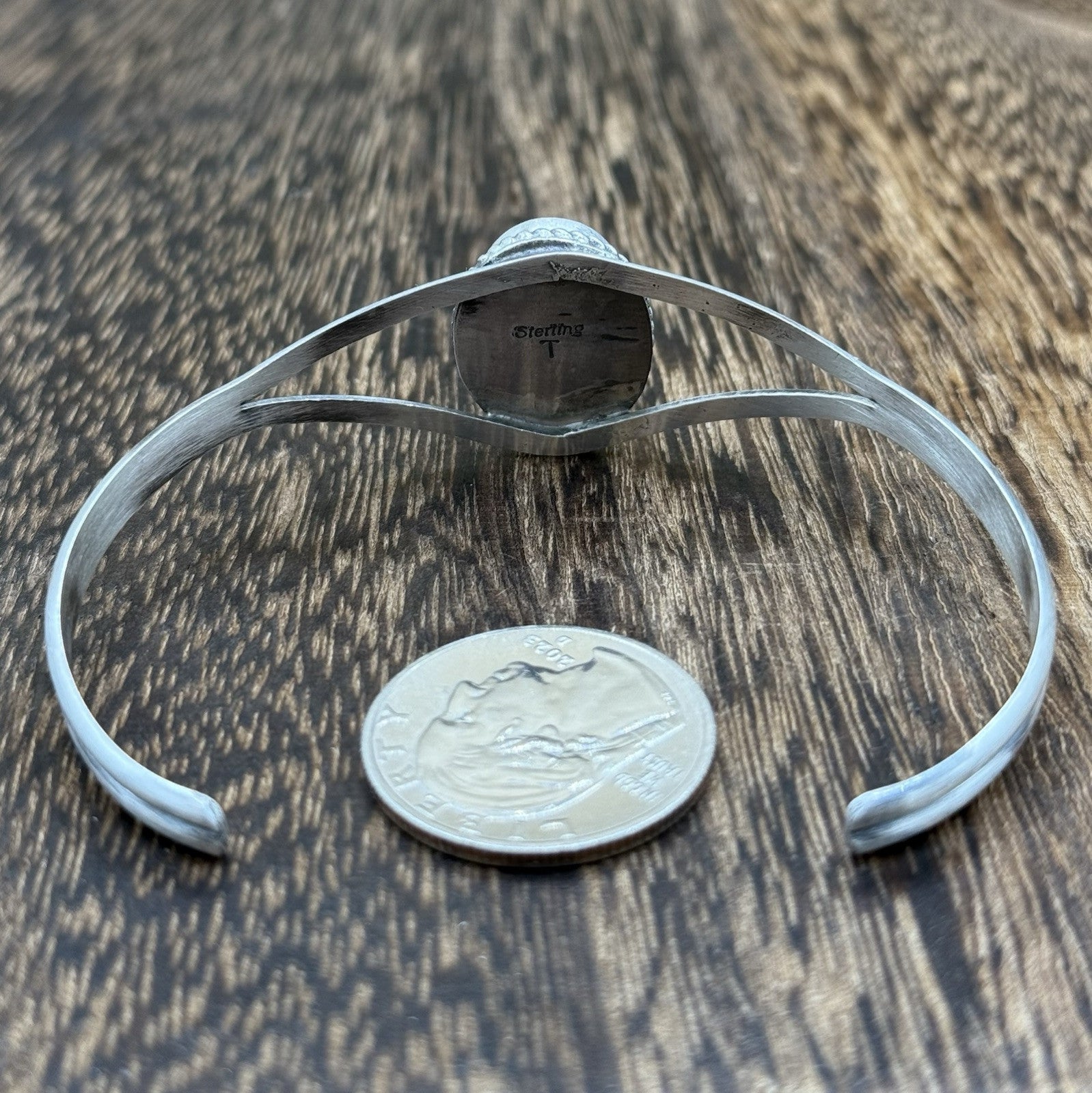 This Native American Navajo handmade cuff bracelet a features beautiful natural spiny oyster shell stone. The intricate design and attention to detail make this bracelet a true beauty. The Navajo tribal affiliation adds to the authenticity and uniqueness of this piece.
