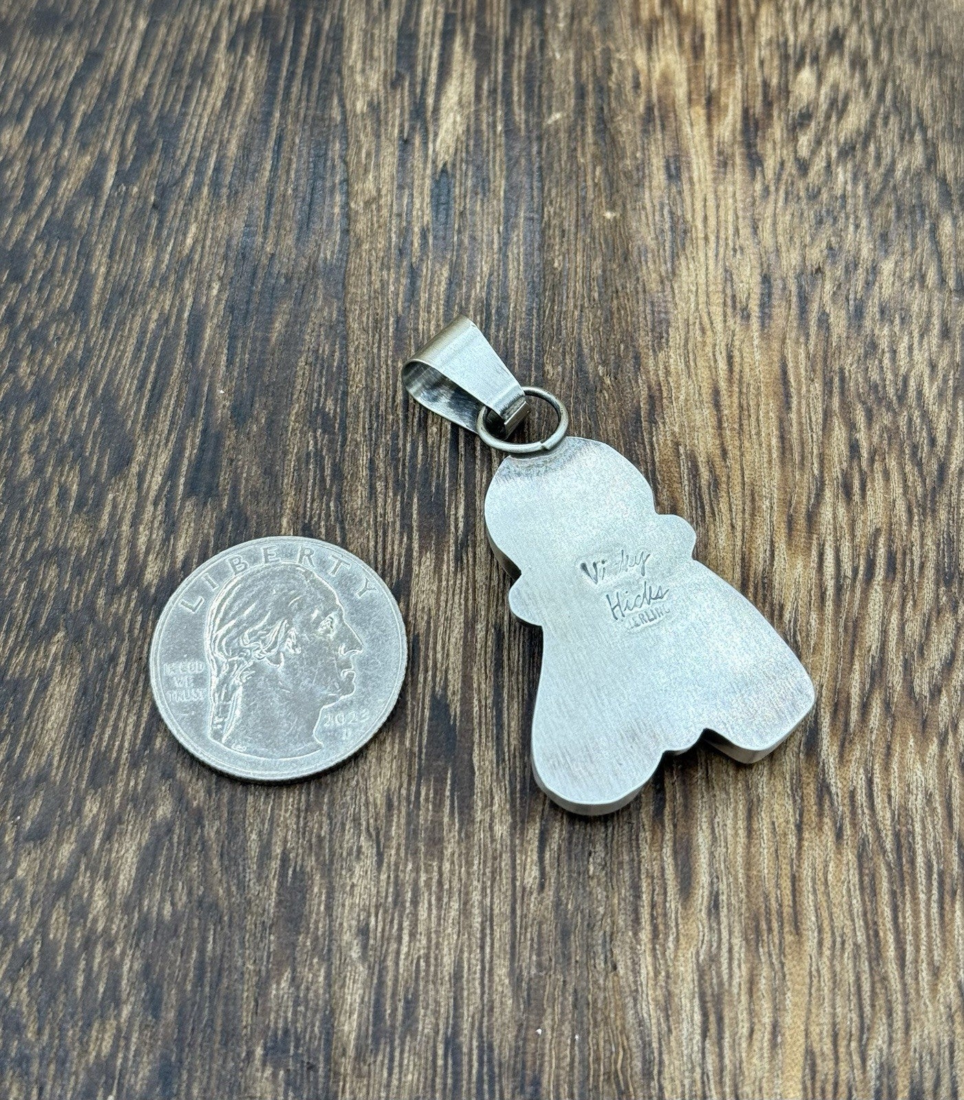 Elevate your jewelry collection with this exquisite Navajo handmade pendant. Crafted by Vicky Hicks, this stunning piece features spiny oyster shell stones, set in a sterling silver setting.