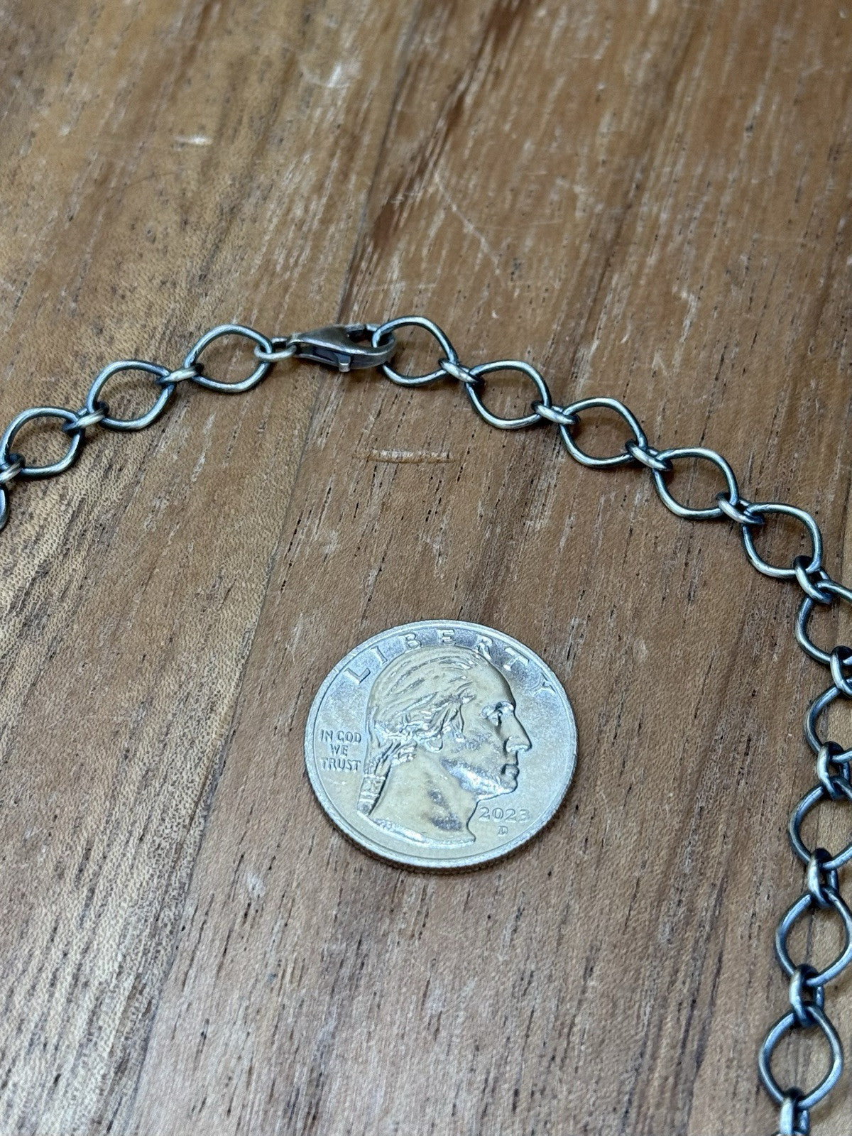 Navajo handmade Sterling Silver Red Spiny Oyster Peace Hippie Necklace 18”