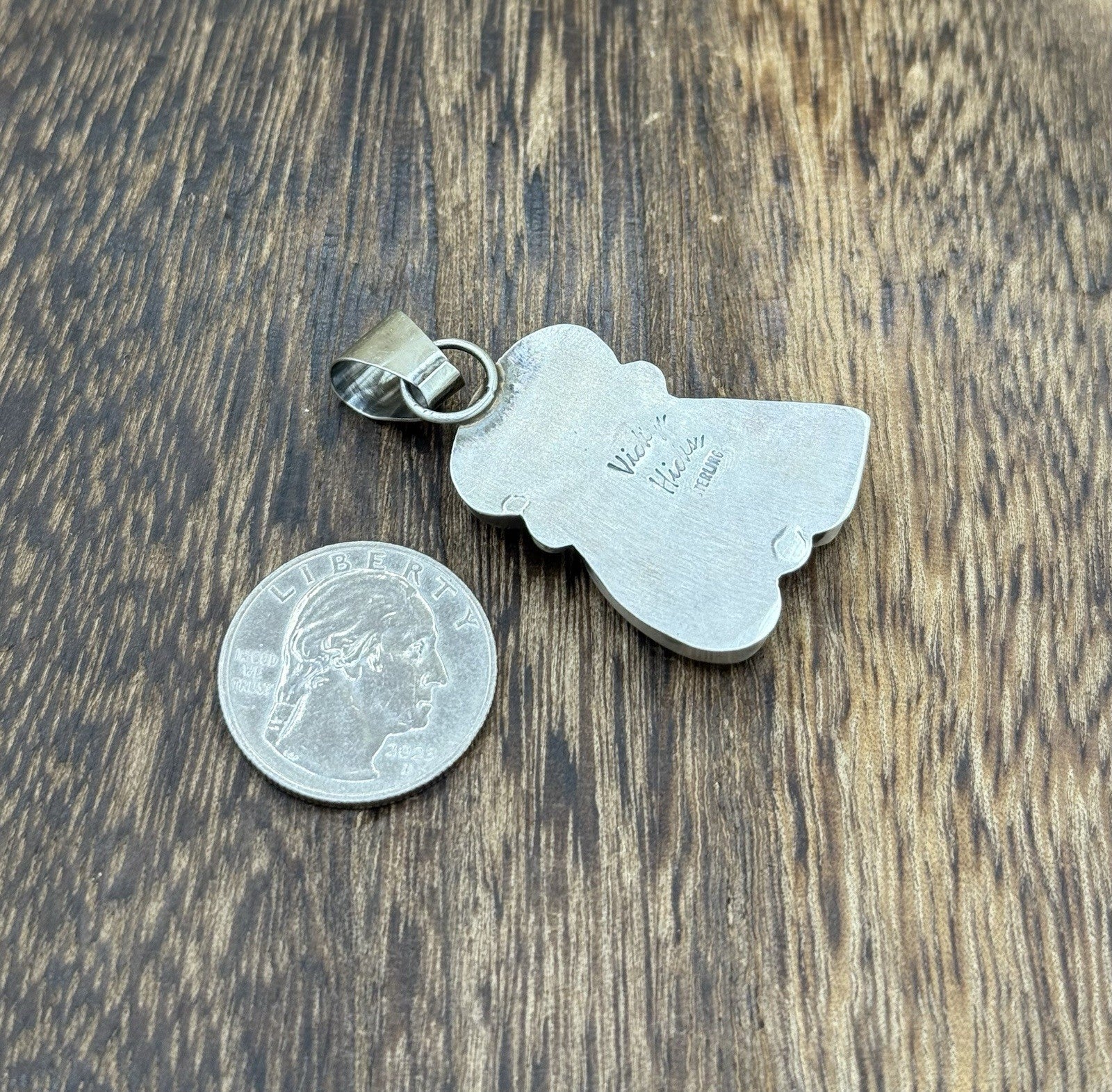 Elevate your jewelry collection with this exquisite Navajo handmade pendant. Crafted by Vicky Hicks, this stunning piece features spiny oyster shell stones, set in a sterling silver setting.
