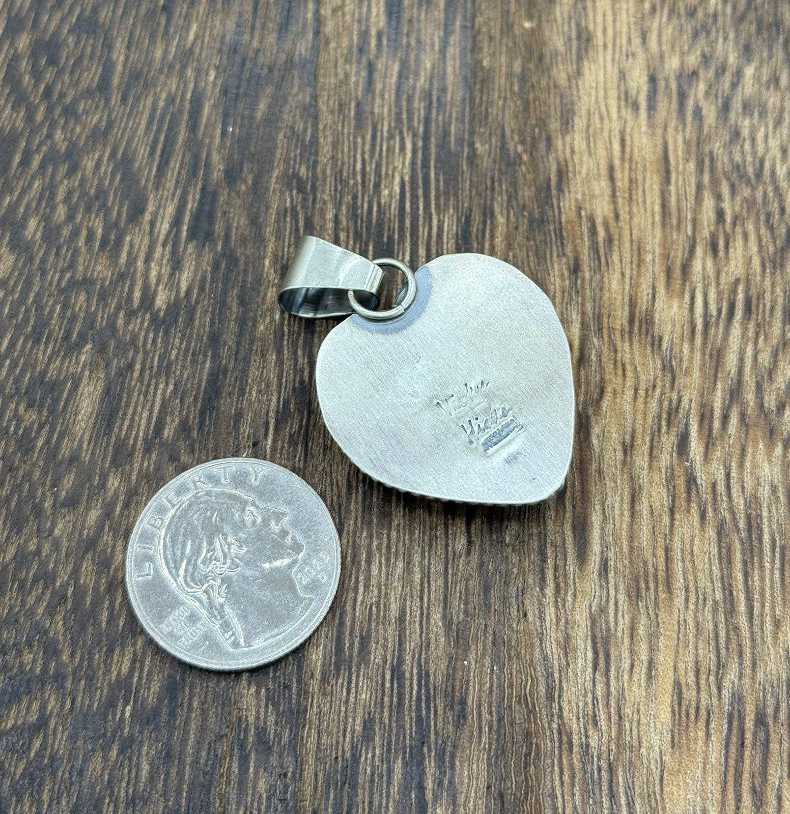 Navajo Handmade Sterling Silver Red Spiny Oyster Shell Heart Shaped Pendant