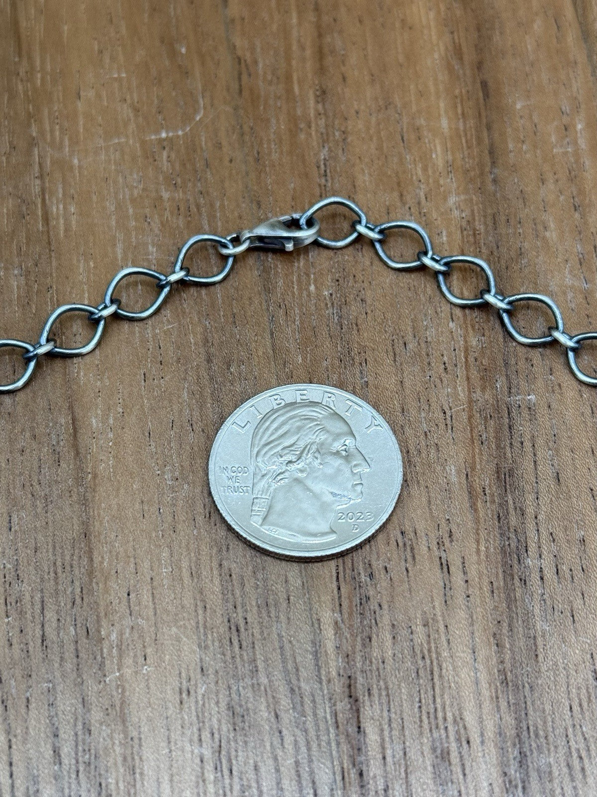 This exquisite lariat necklace is a true work of art handcrafted by Native American artisan Tricia Smith, The stunning lariat necklace features beautiful natural red spiny oyster shell set in sterling silver bezel. The lariat is 20 inches with lobster closure, making it a perfect accessory for any occasion.