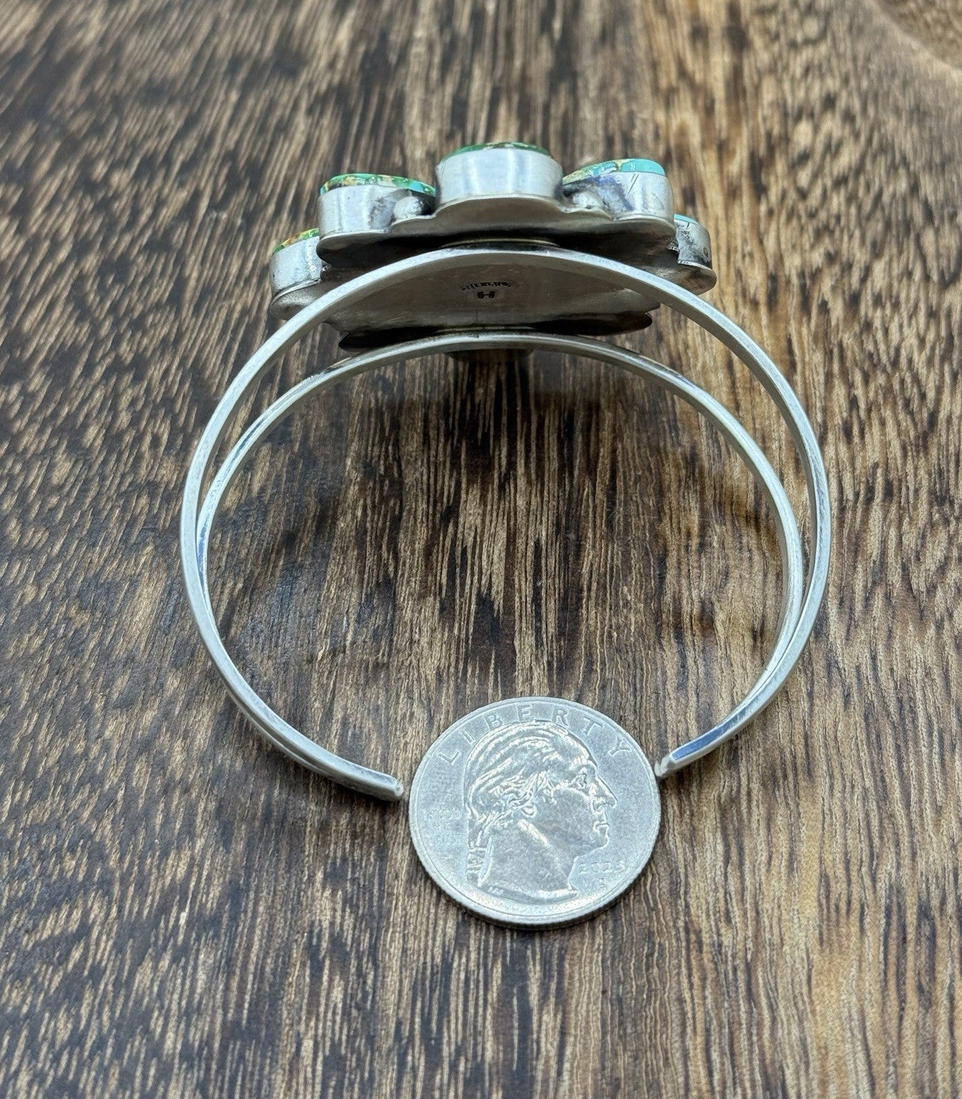 Navajo Handmade Sterling Silver Sonoran Gold Turquoise Cluster Cuff Bracelet