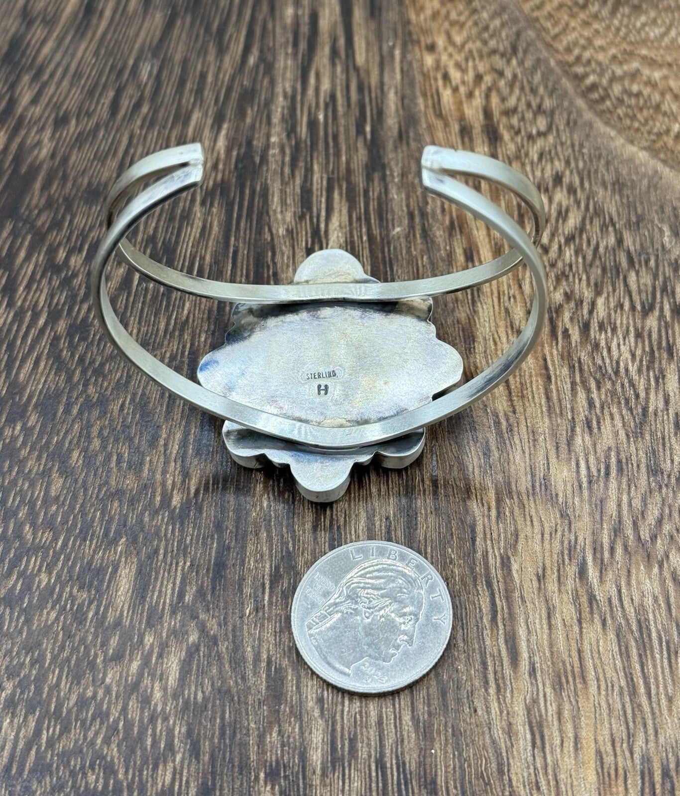 This Native American Navajo handmade cuff bracelet features a cluster of beautiful sonoran gold turquoise stones. The intricate design and attention to detail make this bracelet a true beauty. The Navajo tribal affiliation adds to the authenticity and uniqueness of this piece.