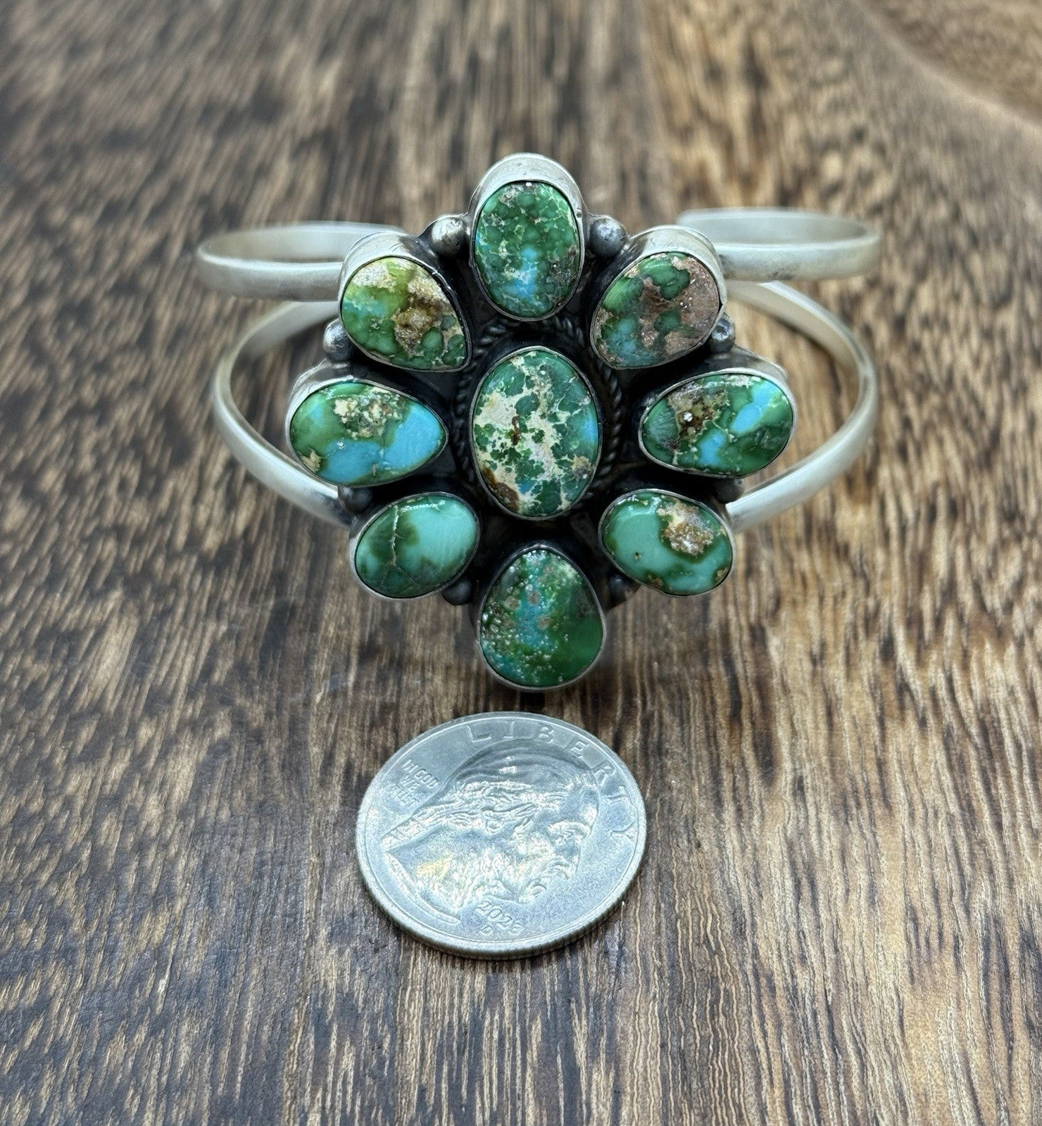 Navajo Handmade Sterling Silver Sonoran Gold Turquoise Cluster Cuff Bracelet