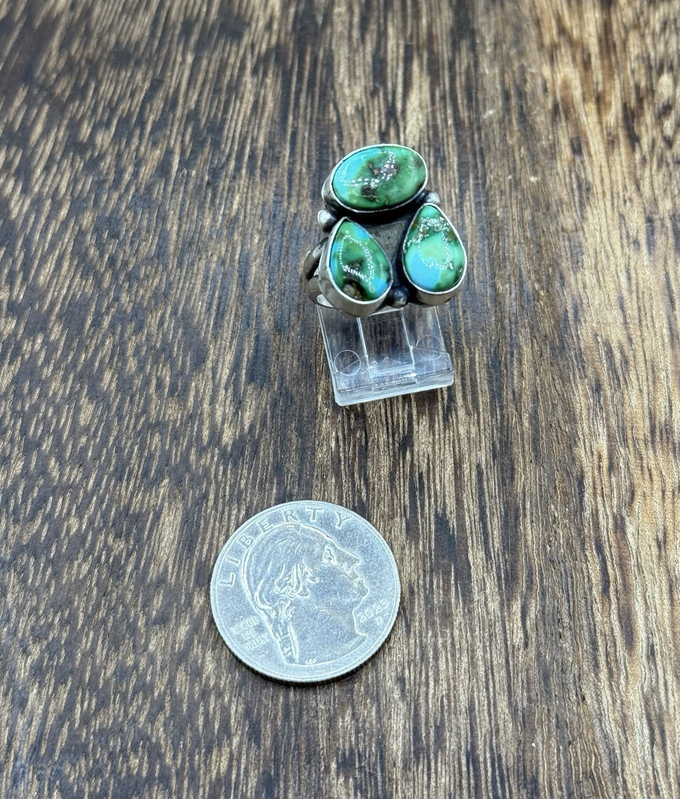 Navajo Handmade Sterling Silver Sonoran Gold Turquoise Cluster Ring Size 7