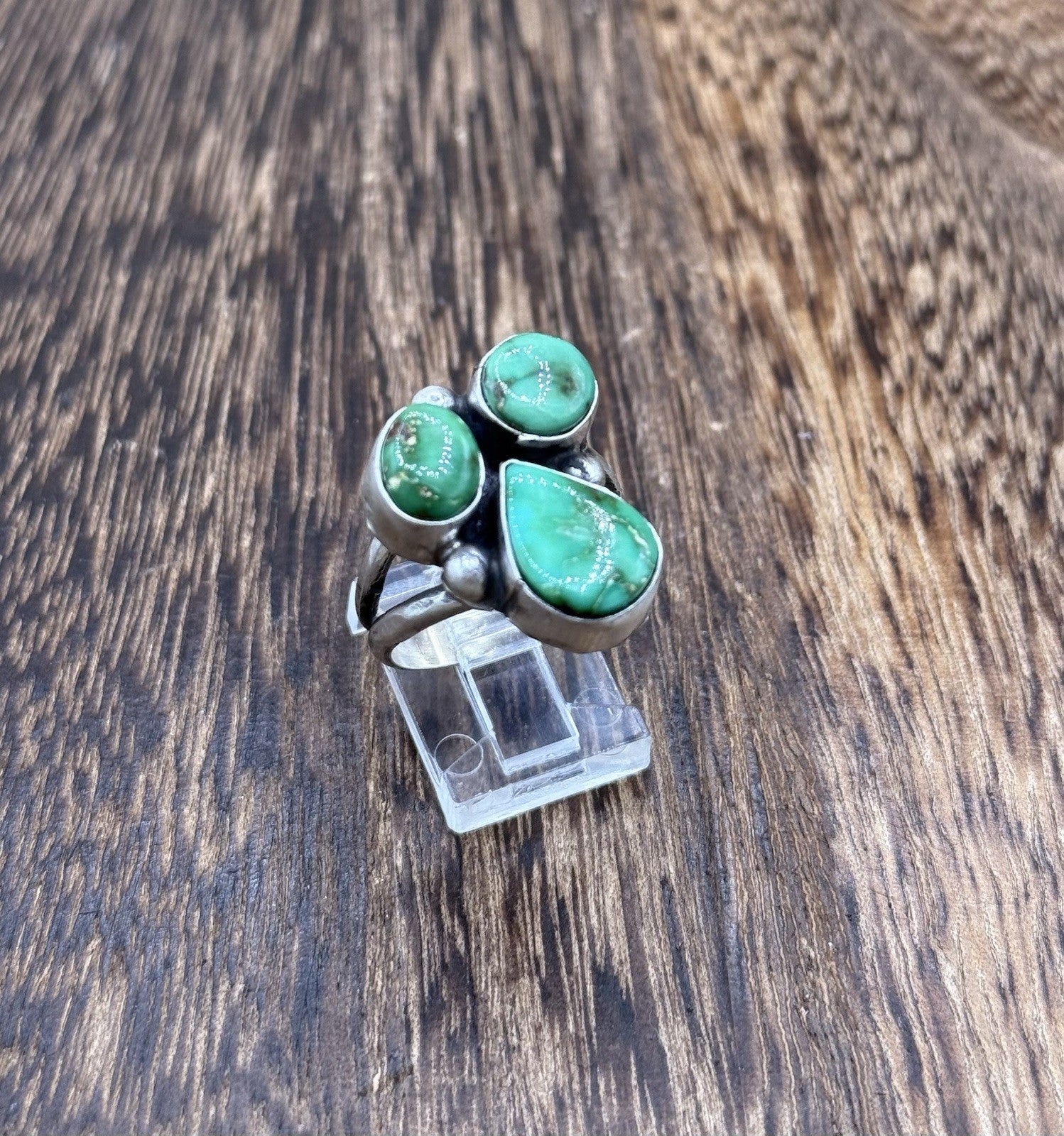 Navajo Handmade Sterling Silver Sonoran Gold Turquoise Cluster Ring Size 9