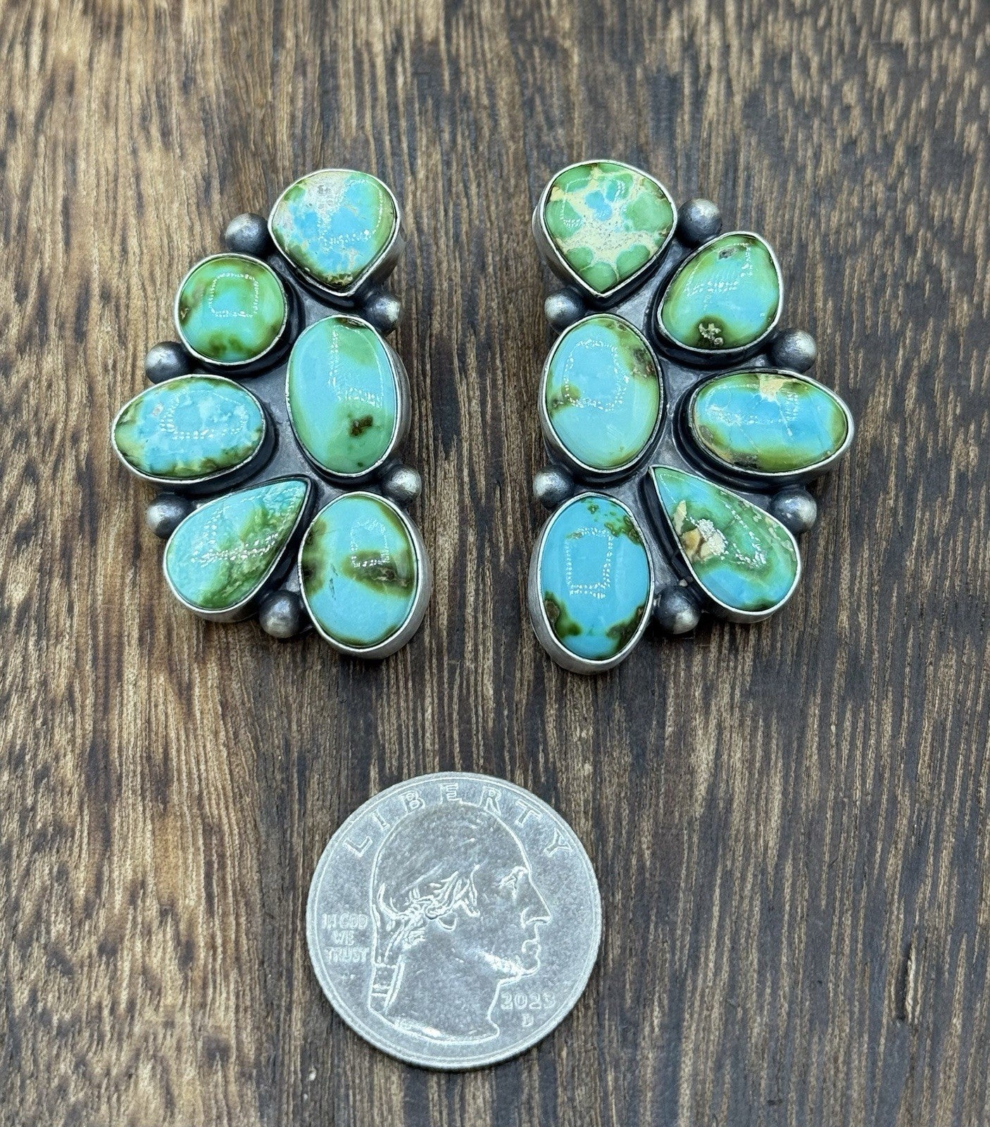 Navajo Handmade Sterling Silver Sonoran Gold Turquoise Half Cluster Earrings