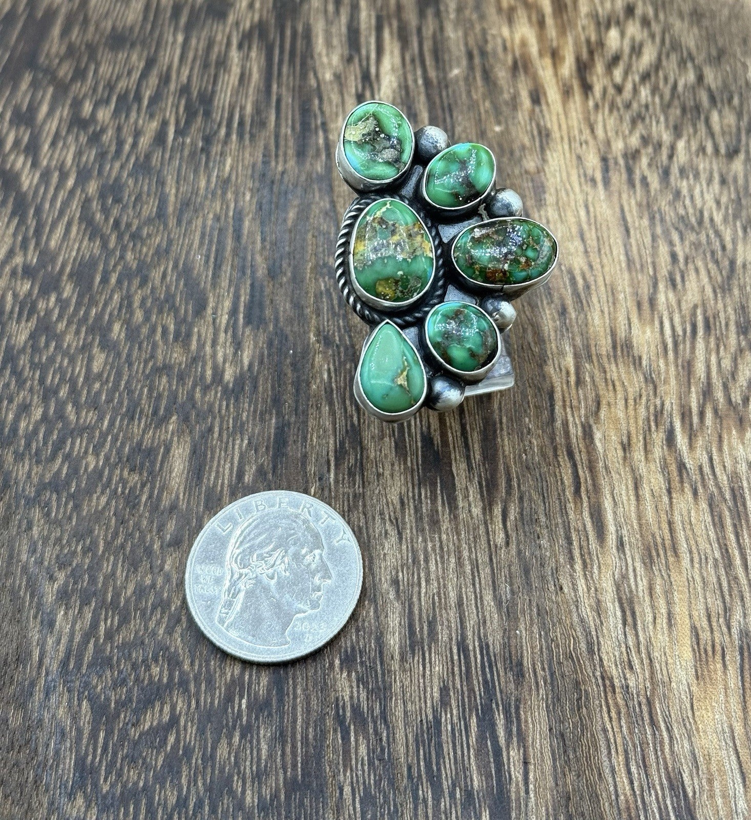 Navajo Handmade Sterling Silver Sonoran Gold Turquoise Half Cluster Ring Size 8